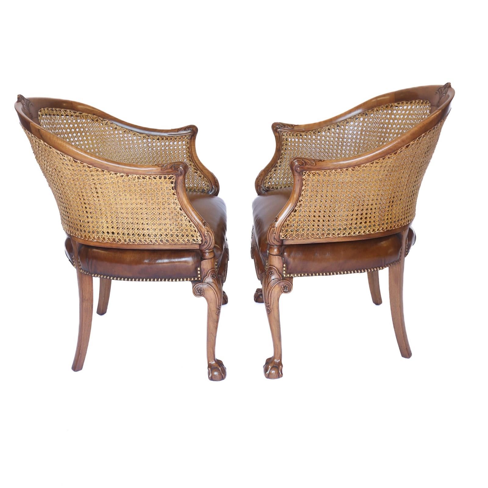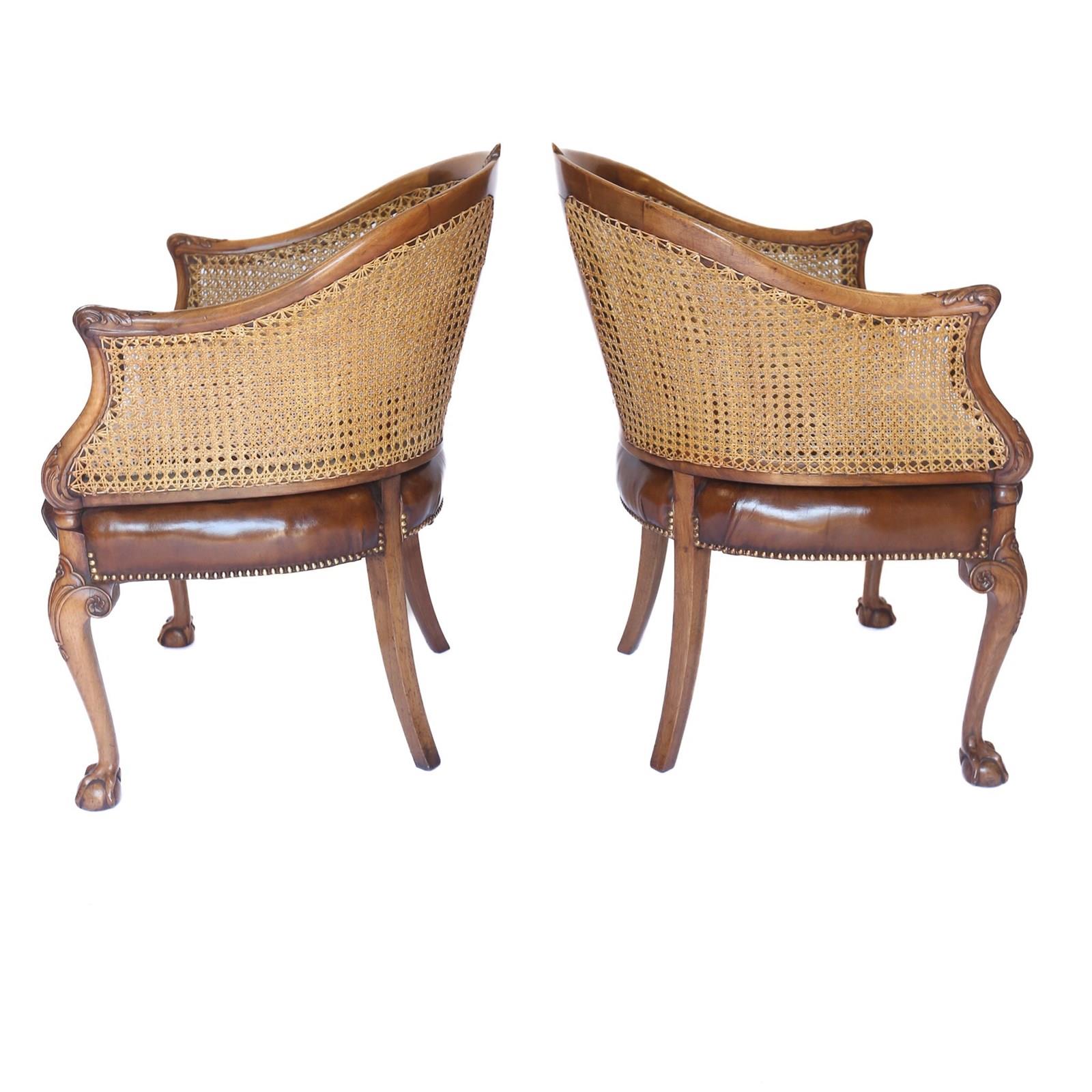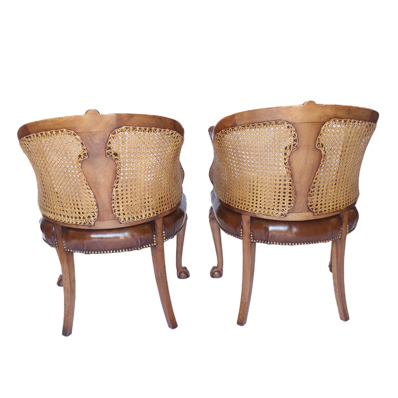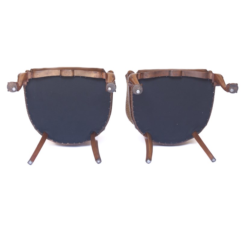 Fine Pair Walnut & carved Bergere Tub Shaped Chairs 1920s