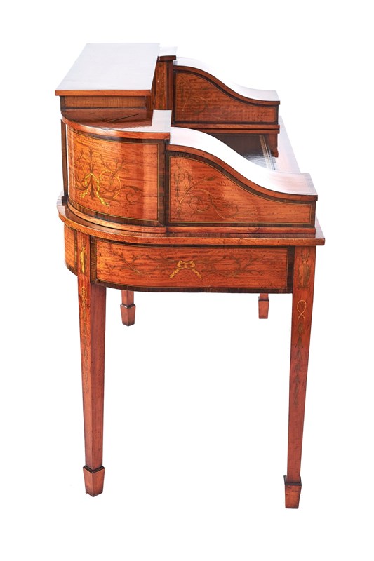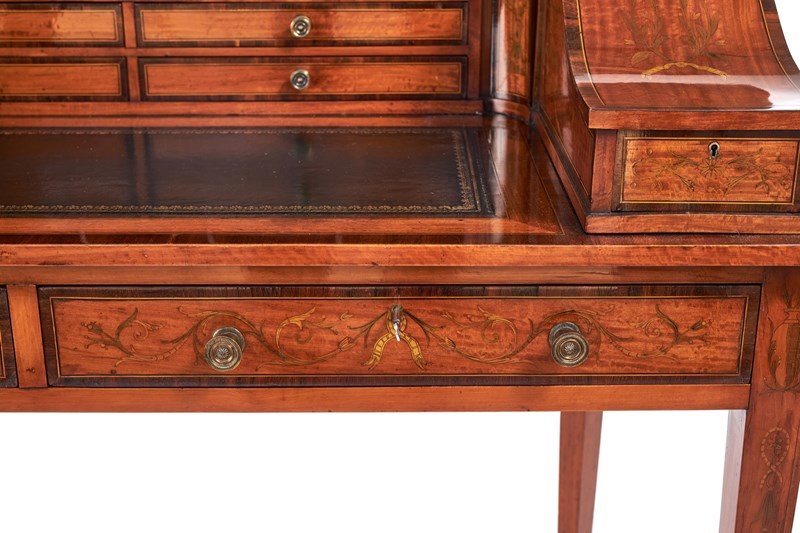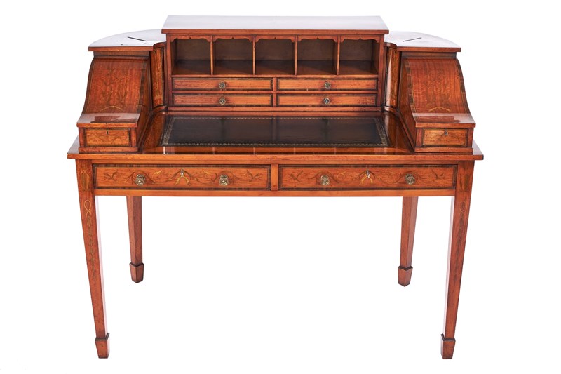 Fine Sheraton Revival Satinwood Inlaid Carlton House Desk