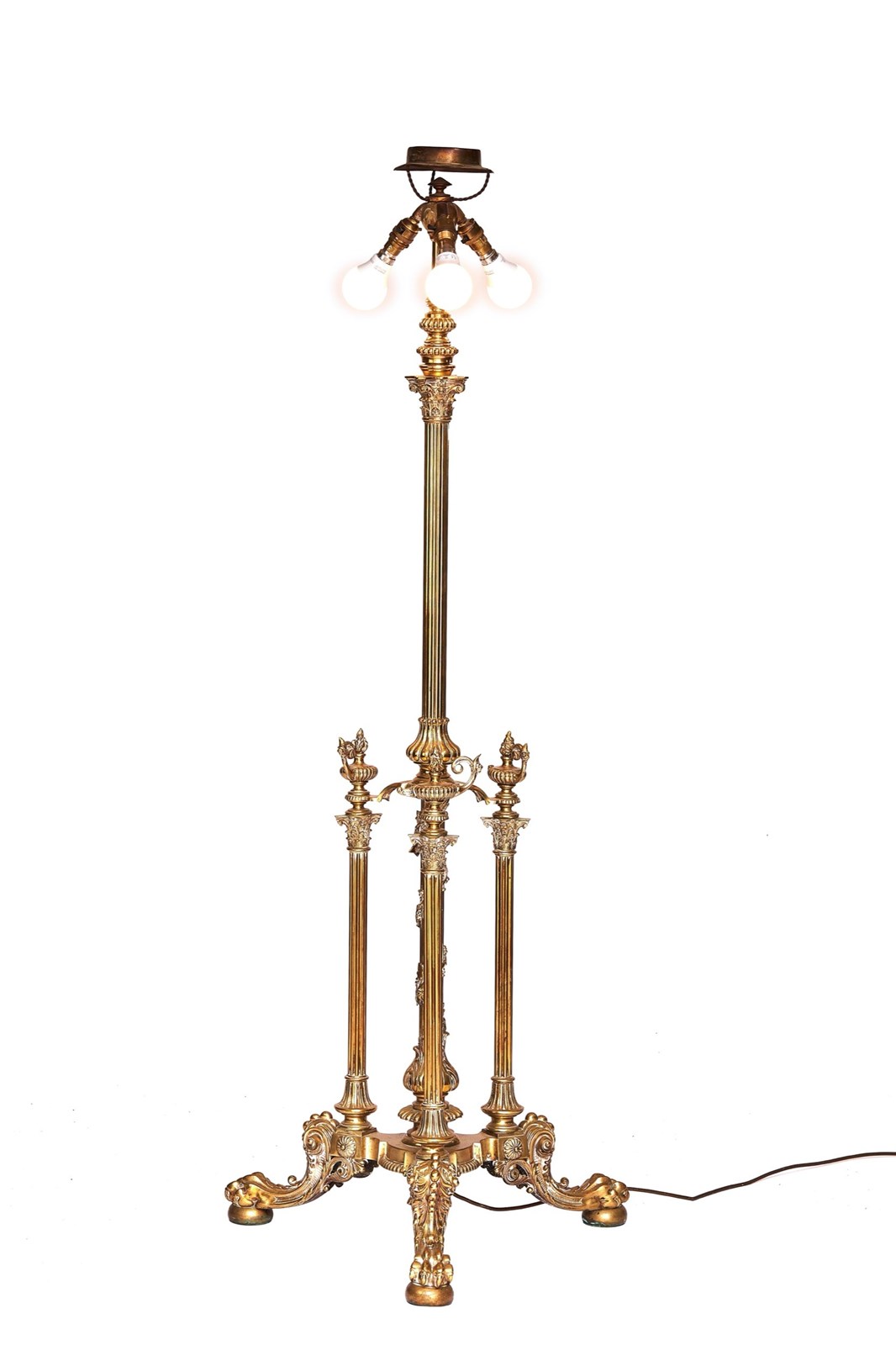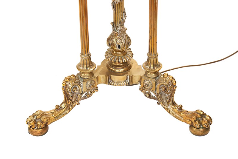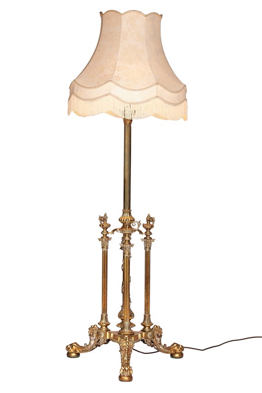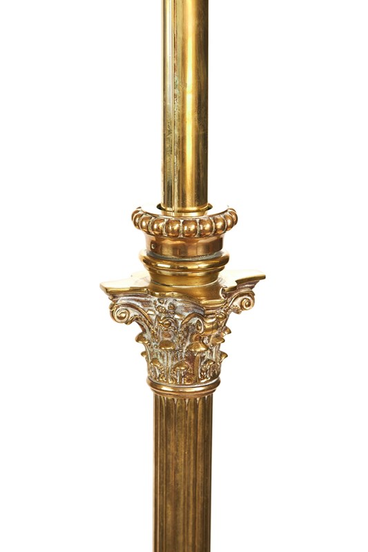 Fine Victorian Brass Standard lamp with Corinthian Columns & Aladdin Lamps, with shade now converted to electricity, with Pat test.