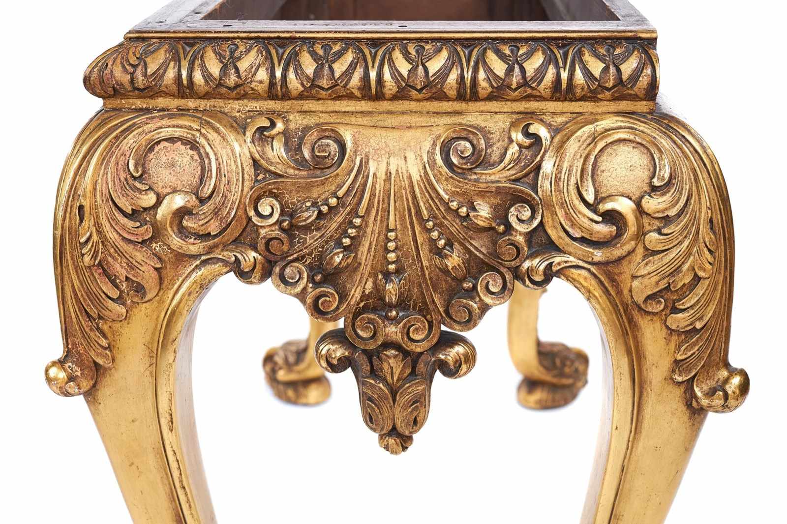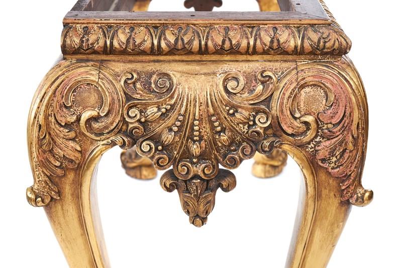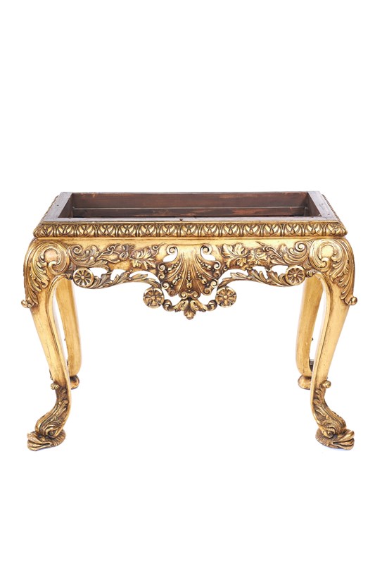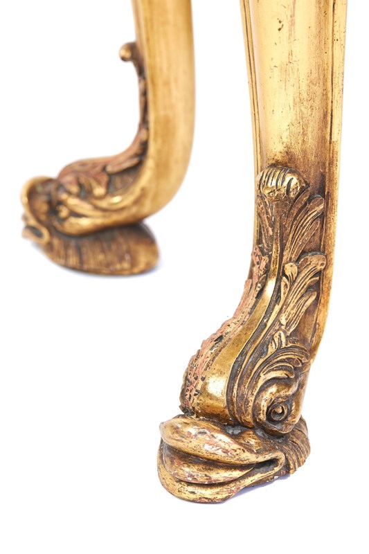 4 Cabriole shaped legs with fine carved Dolphin head feet, very good pierced and decorative carving, on base.