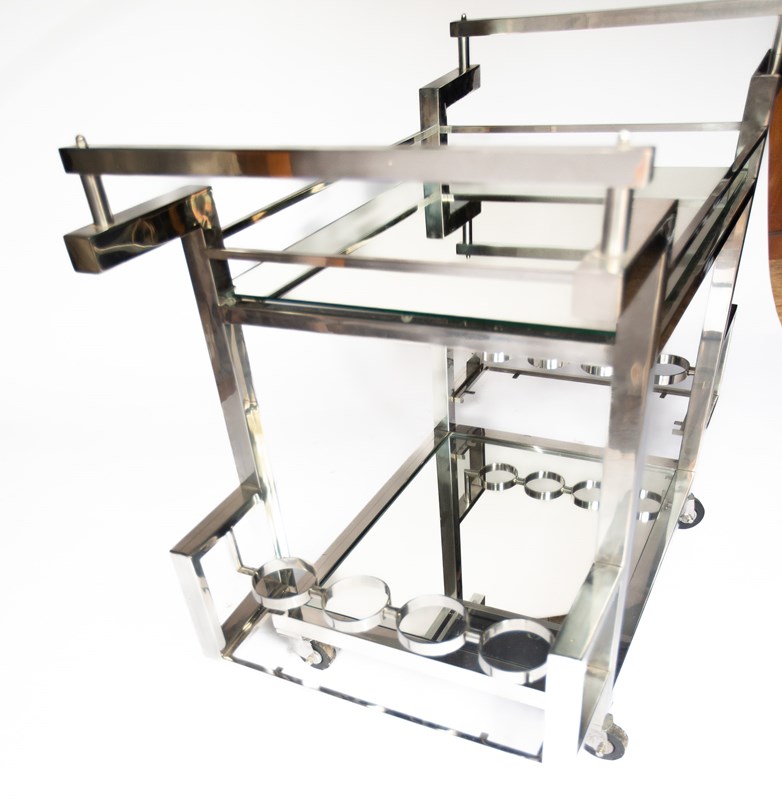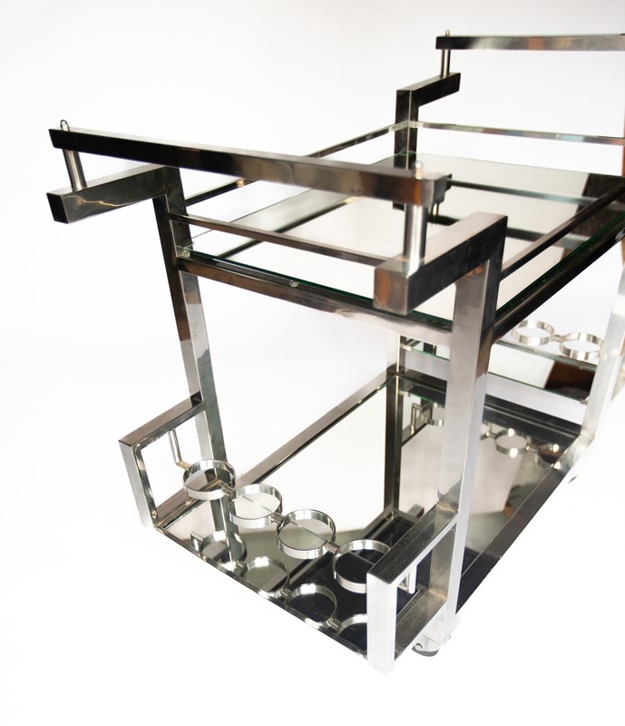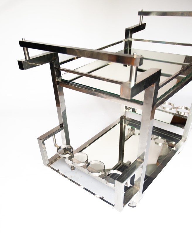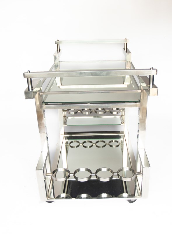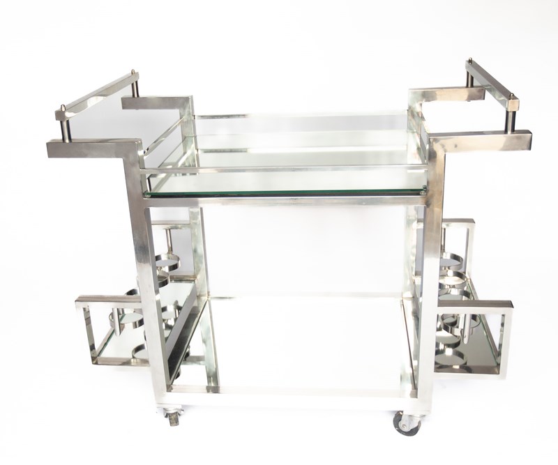 French Art Deco Style Chrome & Mirrored Cocktail Trolley