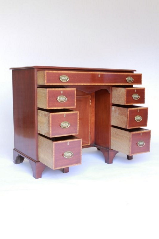 George 111 Period Mahogany & Inlaid Kneehole Desk