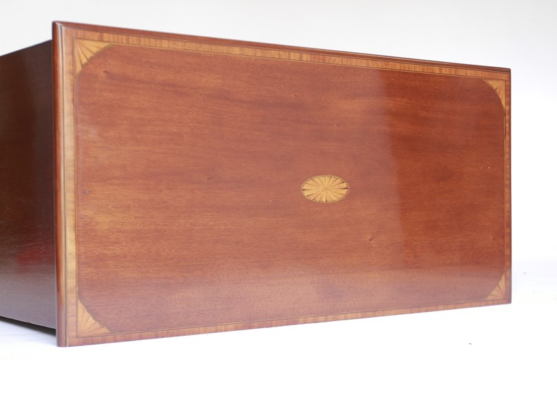 Kneehole with Centre cupboard single door with Satinwood Banded & centre fan inlay