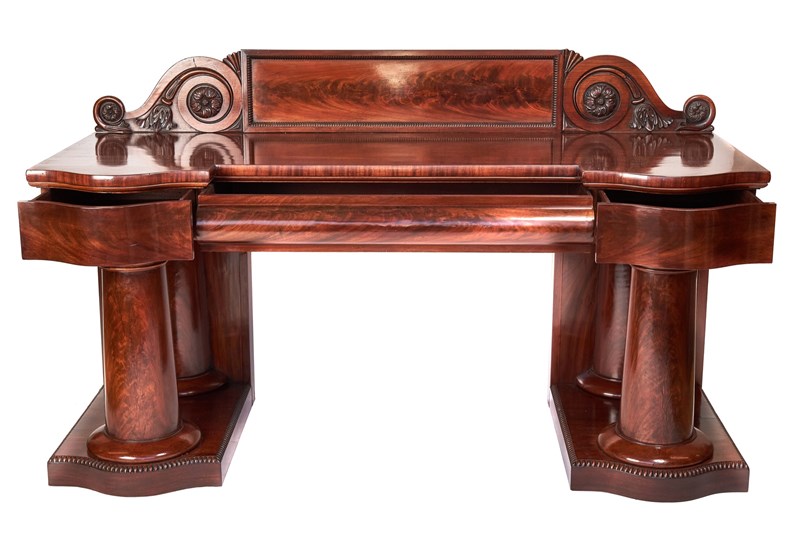 Long centre drawer, with Pair Serpentine shaped front drawers each side,