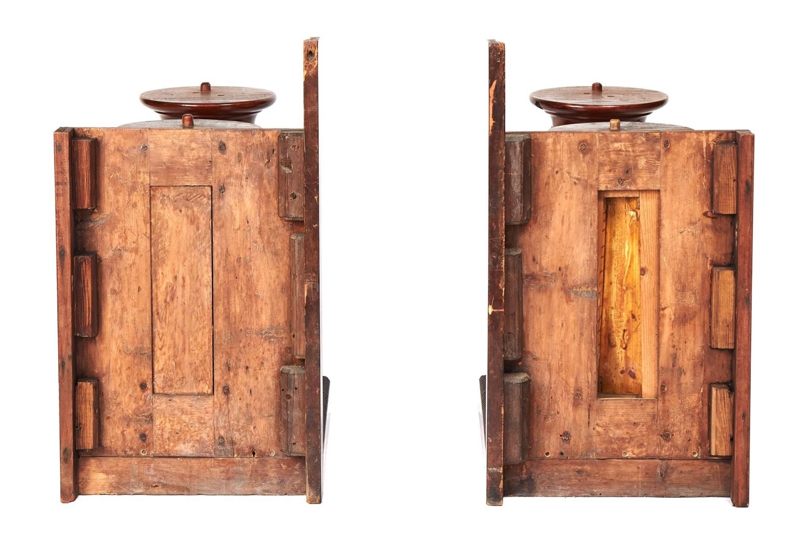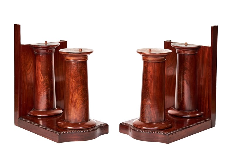 Pair Full & Half Column Pedestals, with Striking Flamed Mahogany,disc shaped bases