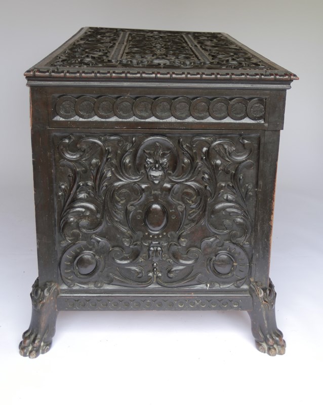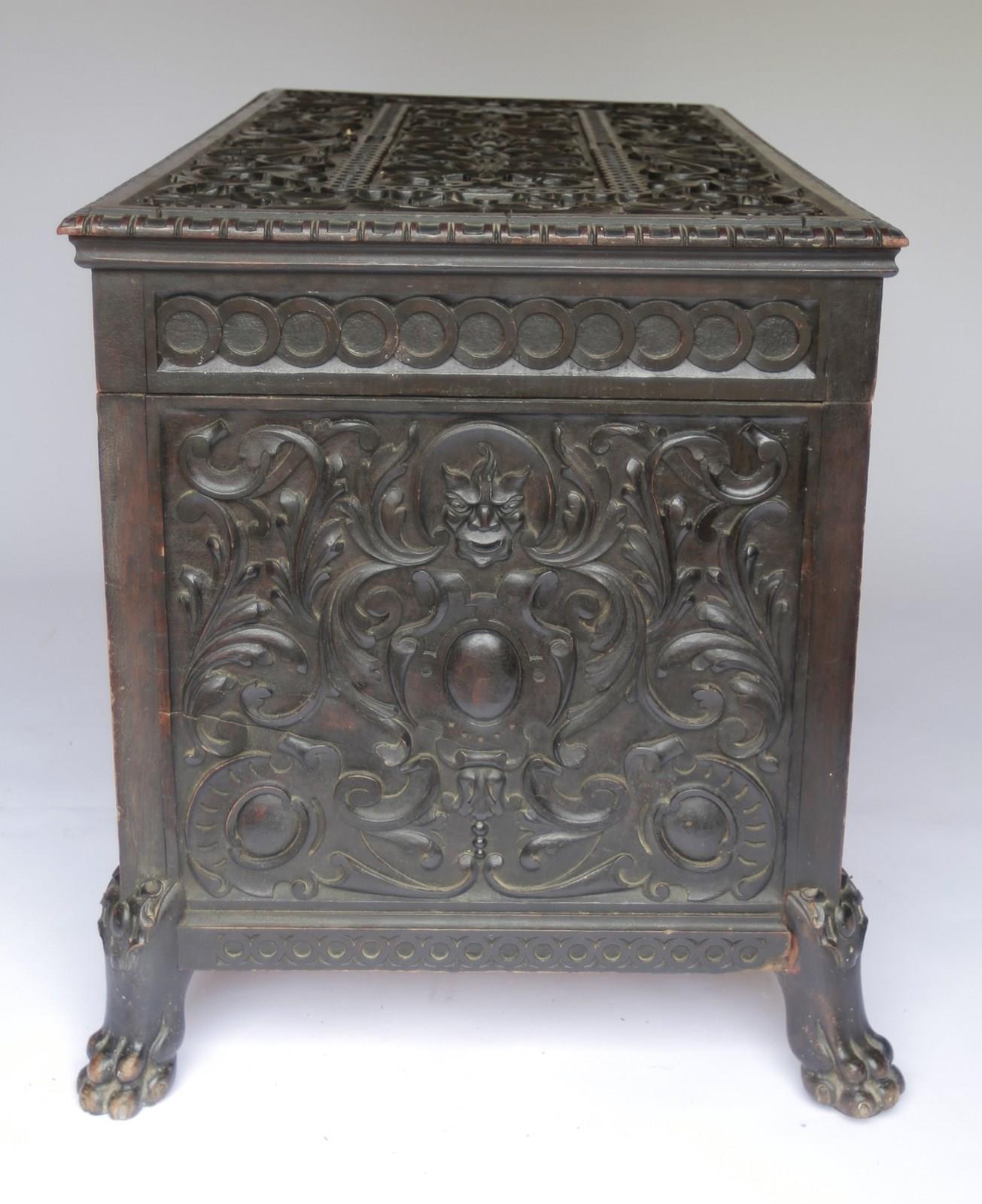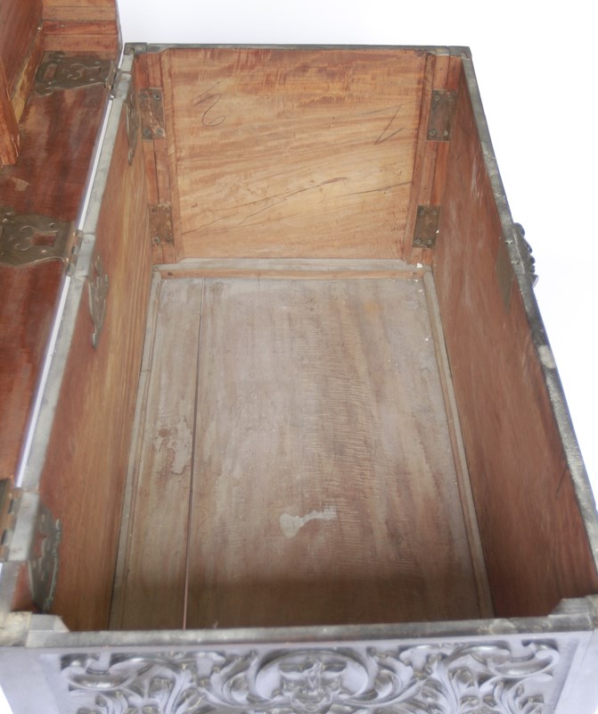 Large Victorian Chinese Redwood carved coffer