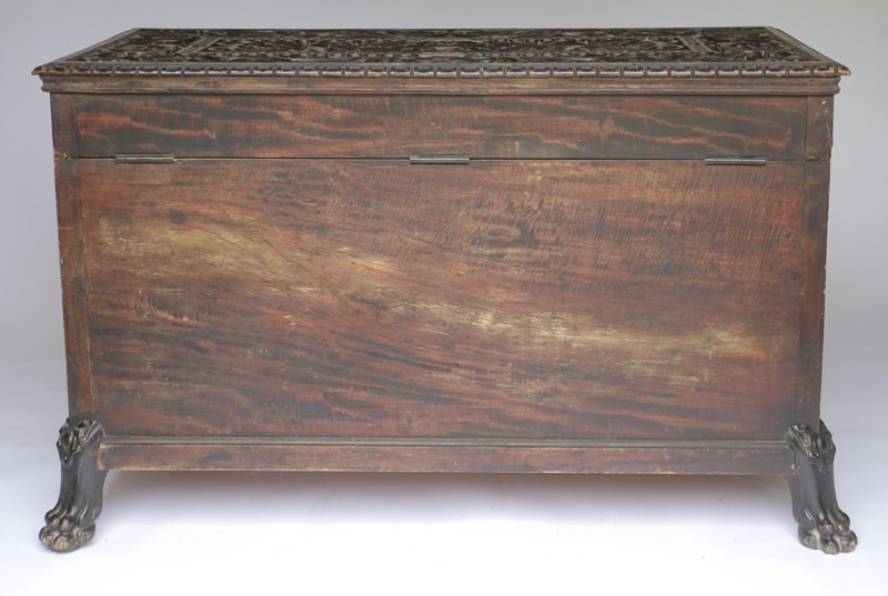 Large Victorian Chinese Redwood Carved Coffer