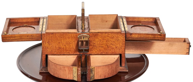 Late Victorian Oak Aesthetic Movement Cigar box maker Benetfink & co