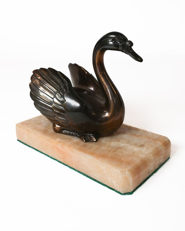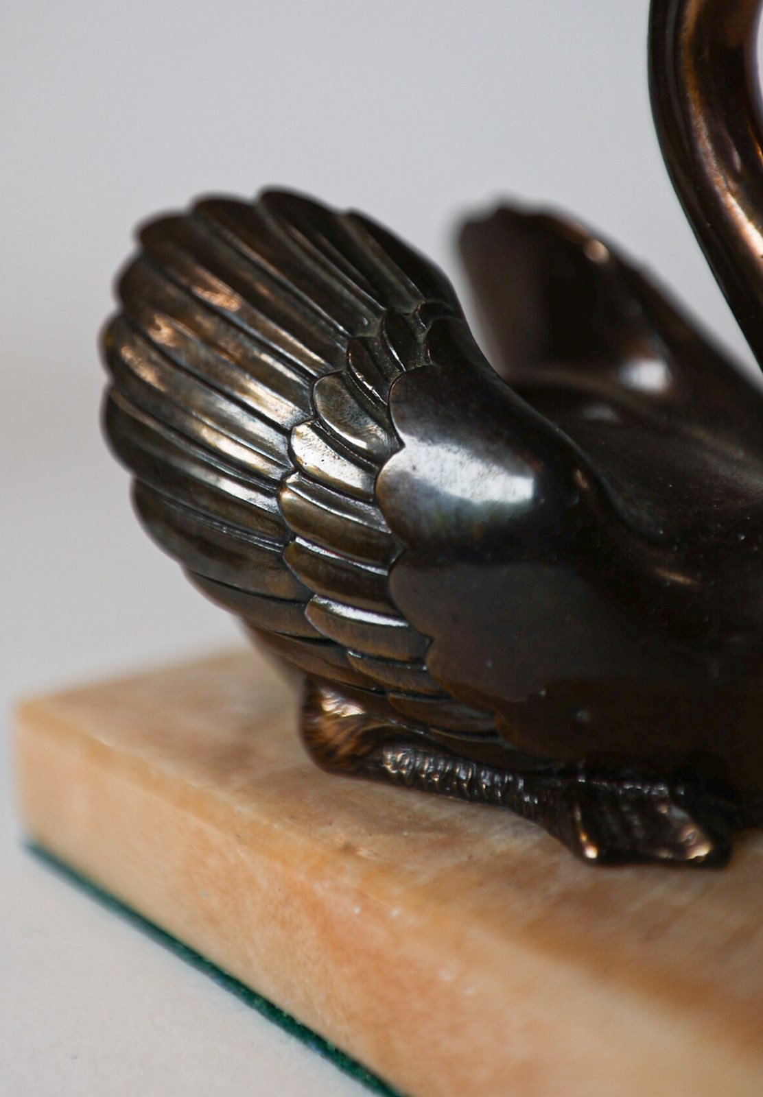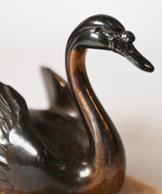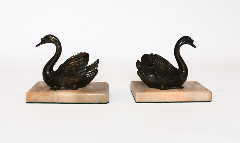 Pair Art Deco Spelter Swan Figures / Book Ends