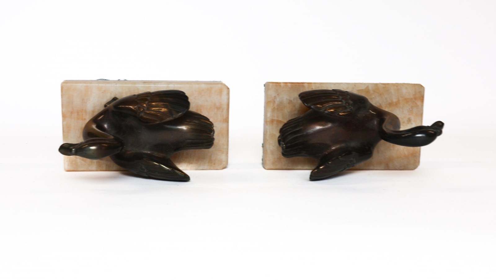 Pair Art Deco Styized Spelter Swan Figures / Book ends