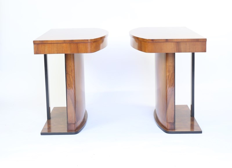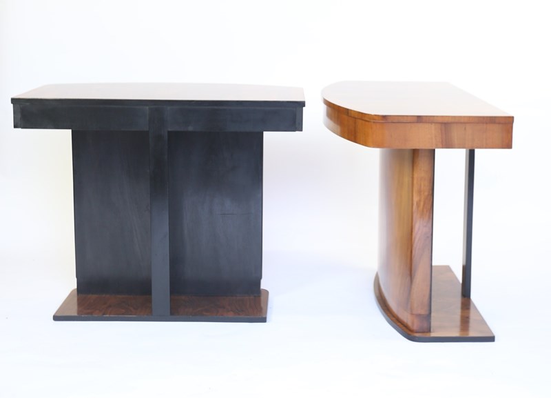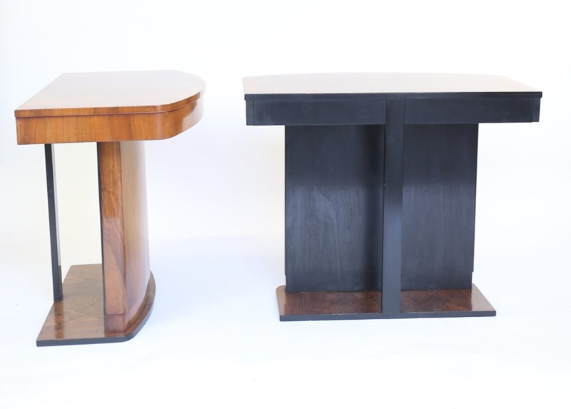 Pair Art Deco Walnut & Ebonised Console Tables