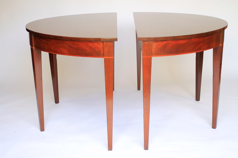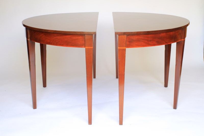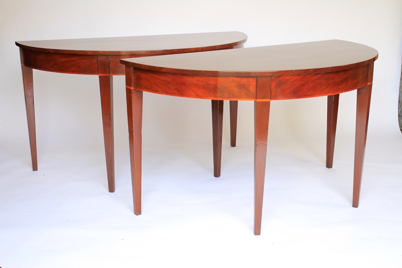 Pair Georgian Mahogany Demi Lune Console Tables