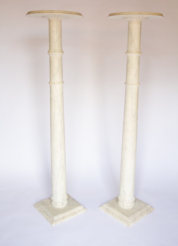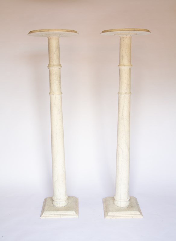 Pair Victorian Faux Marble column shaped Pedestals