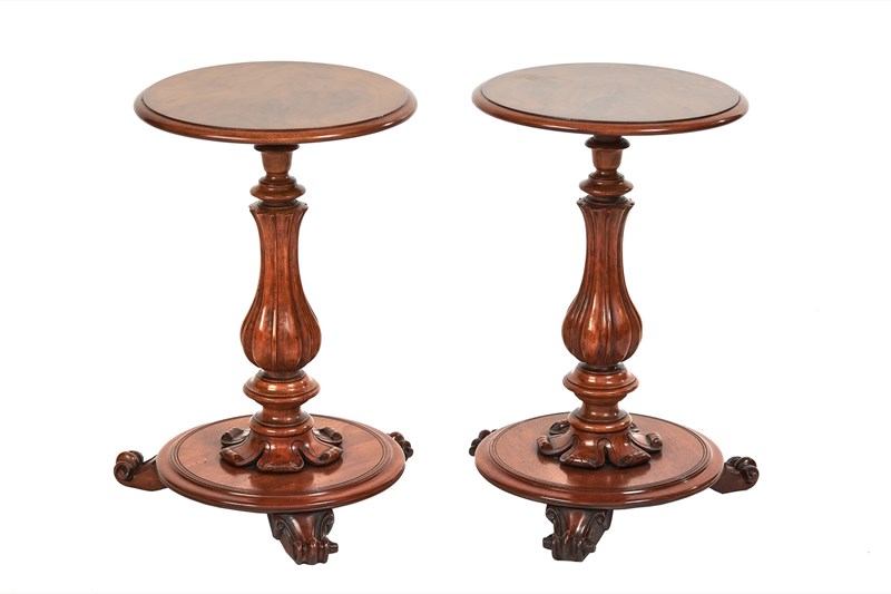 Figured Walnut Circular tops with thumb mould edge,35cm diameter