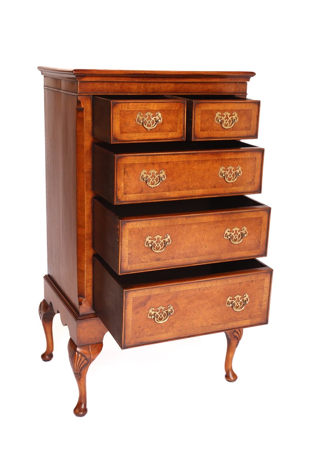 Queen Anne style Burr Walnut 5 Drawer Chest circa 1930s