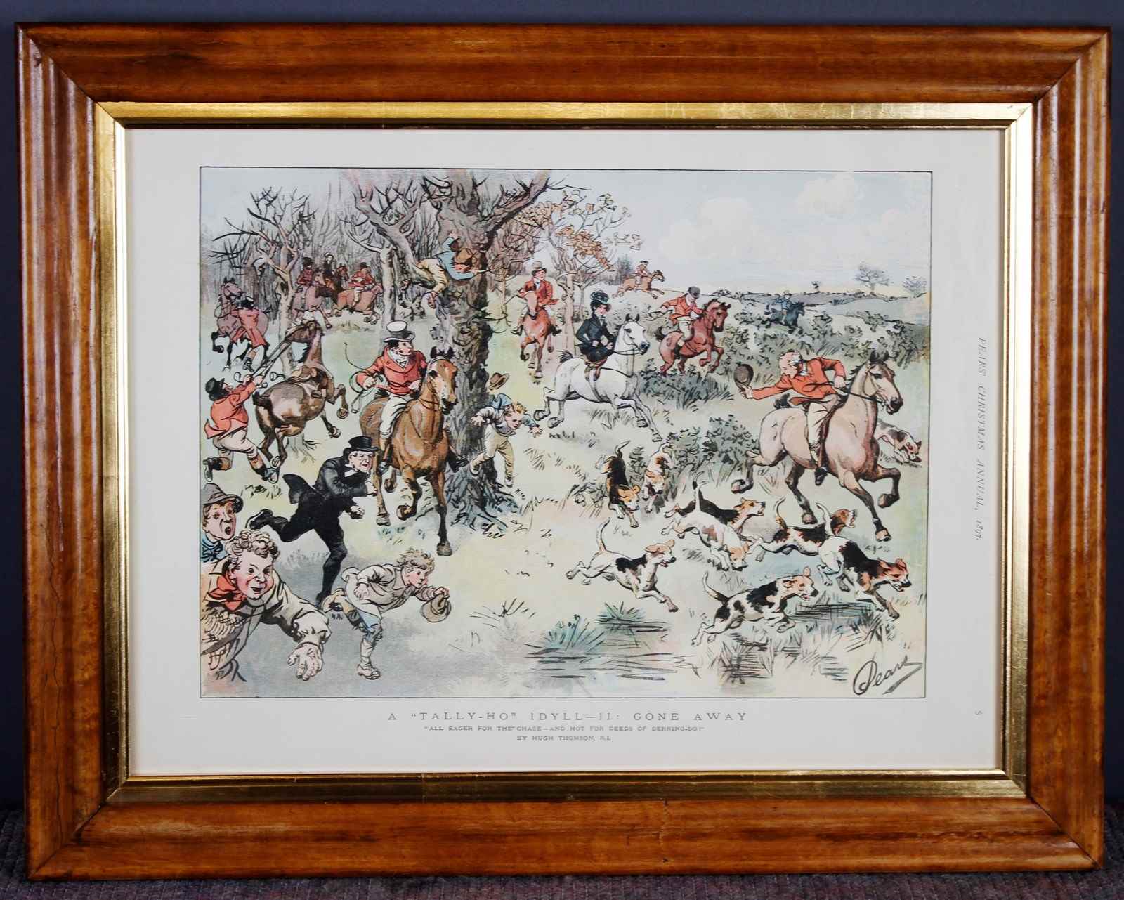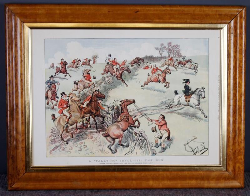 Print 2 reads A Tally- Ho IDYLL- 11 Gone Away all eager for the chase, and hot for deeds of derring -do