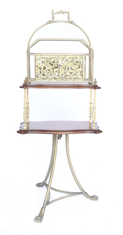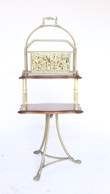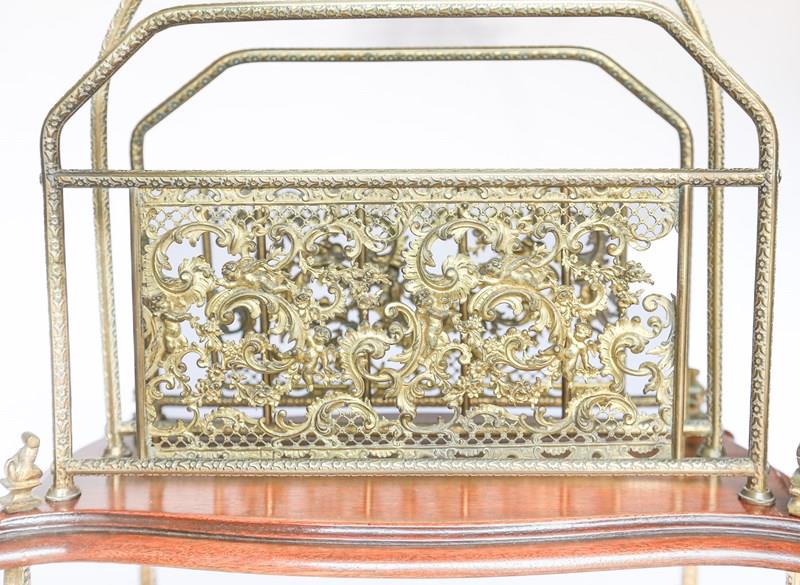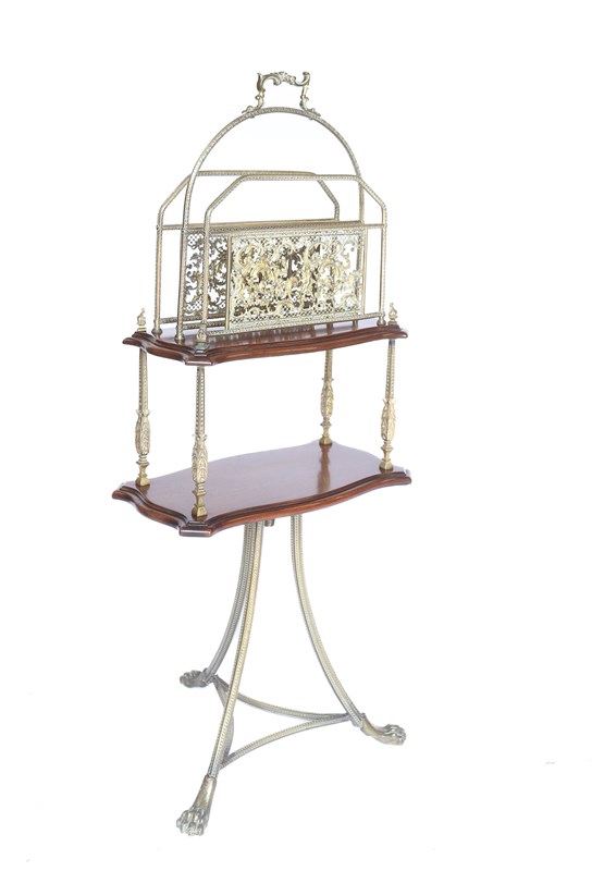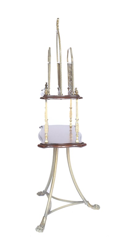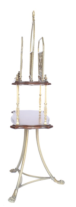 Victorian, Mahogany & Gilt Brass Revolving Canterbury on stand