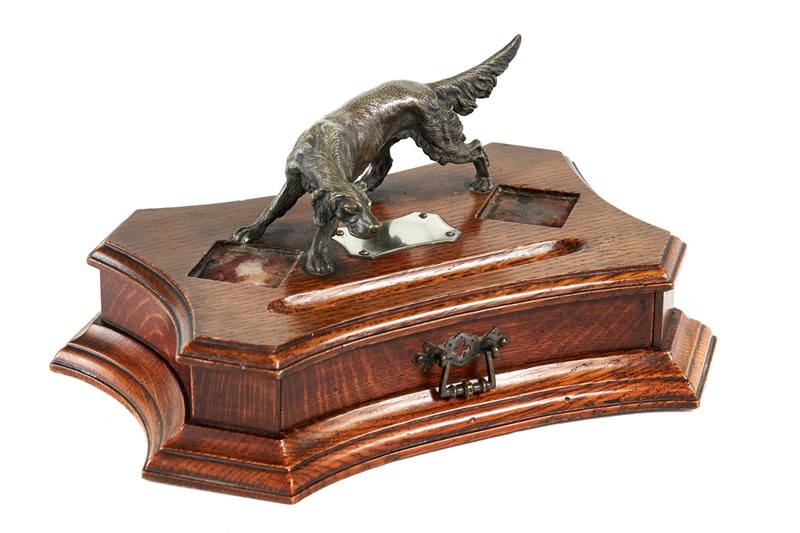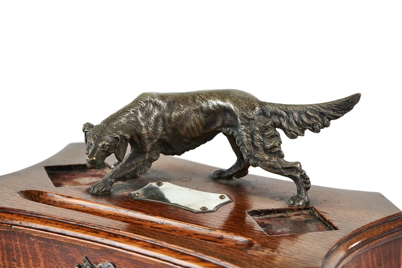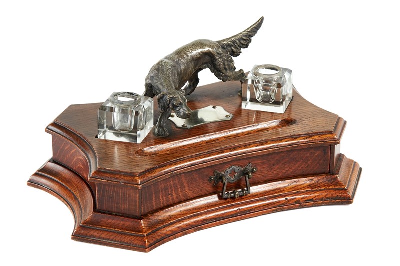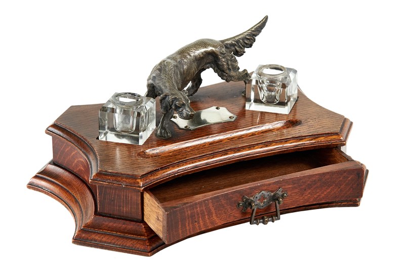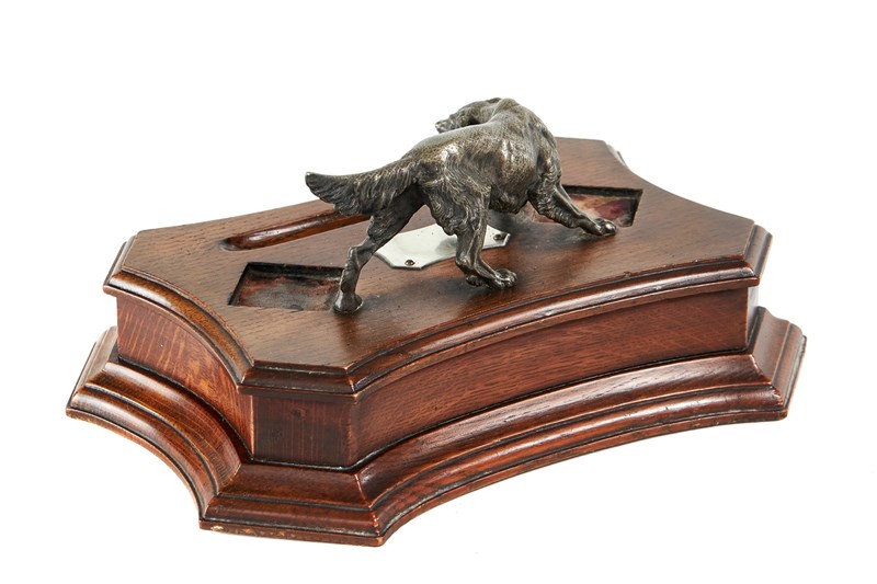Victorian Oak Desk stand with Silver plated Red Setter circa 1880s