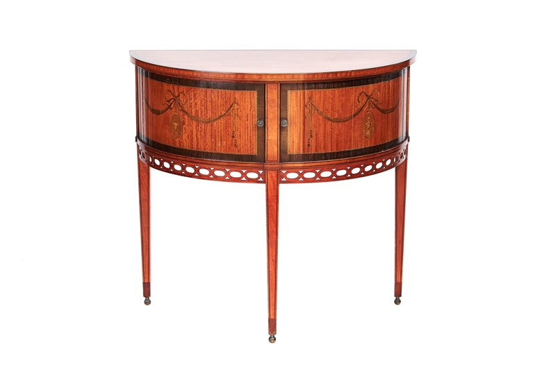 Victorian Satinwood Demi Lune Tambour Cabinet