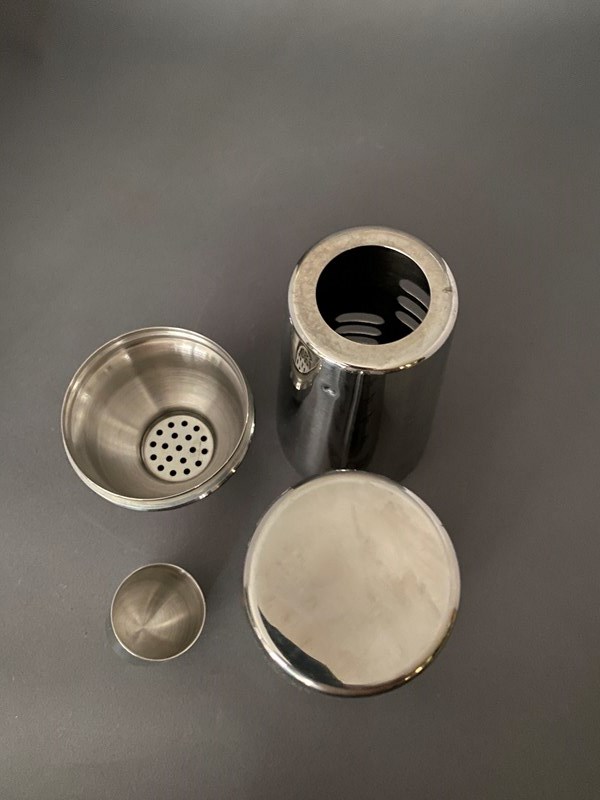 Vintage silver plated Recipe/menu cocktail shaker 1950s