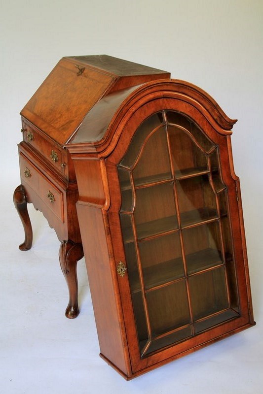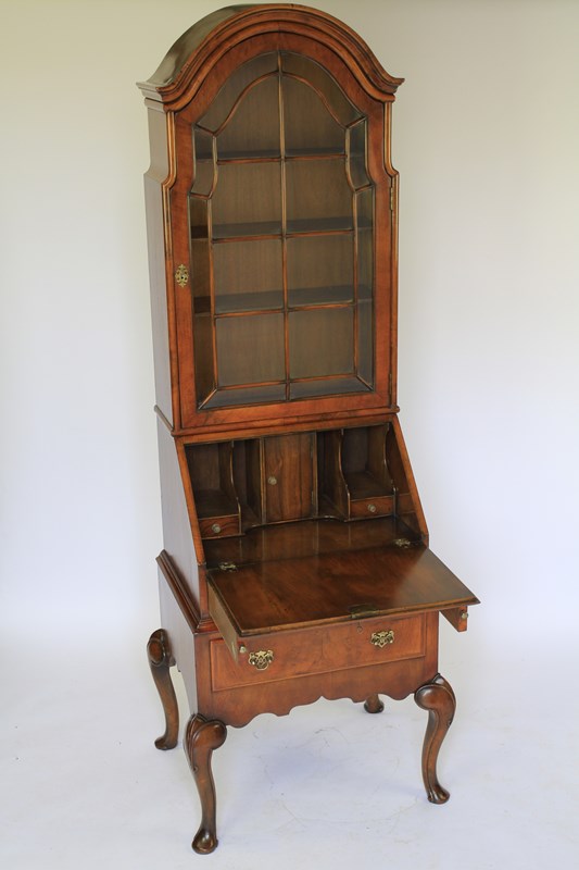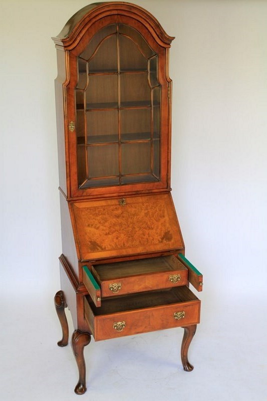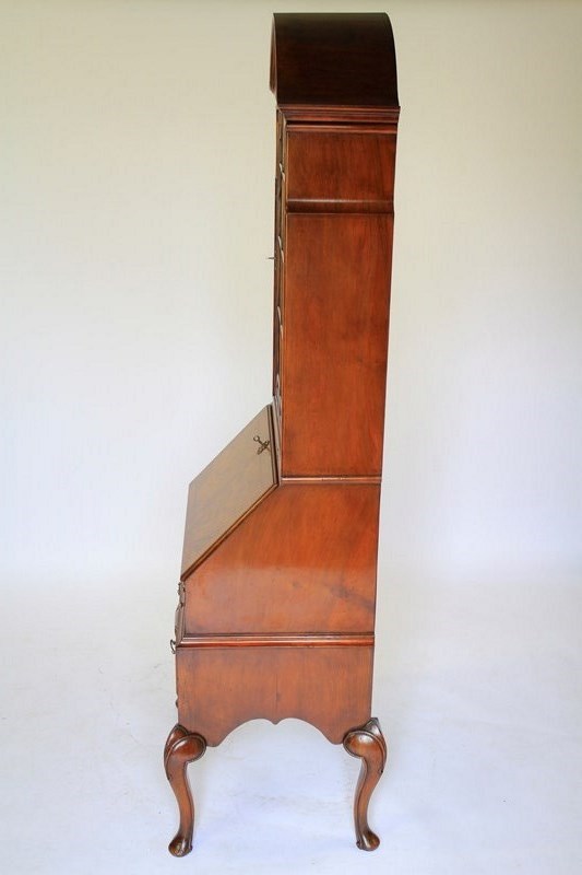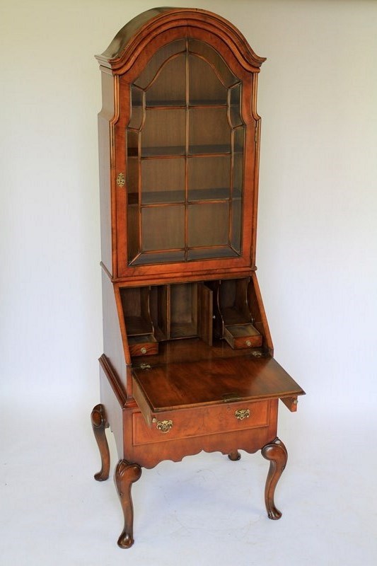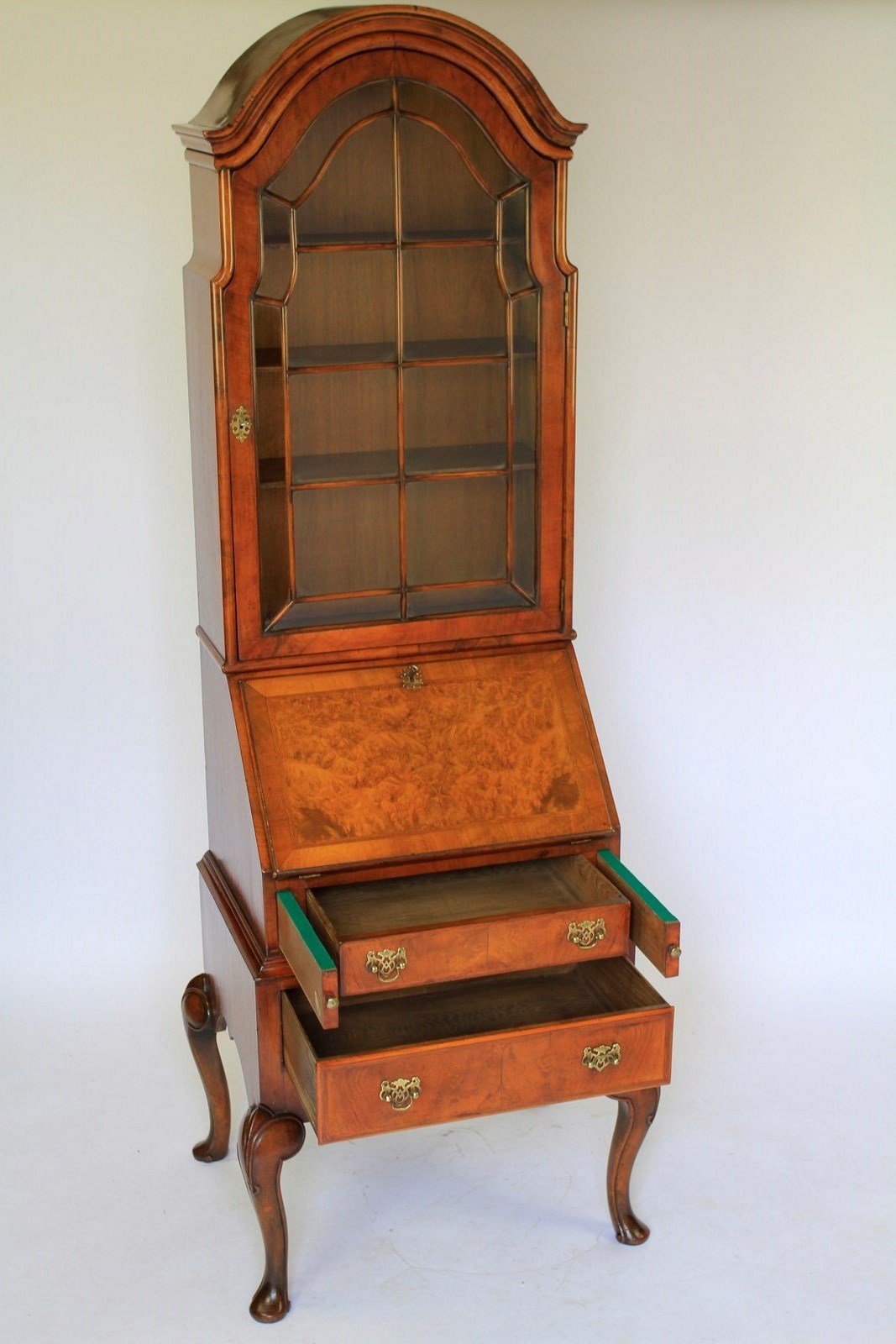 Antique Walnut Queen Anne Revival Bureau Bookcase circa 1920s