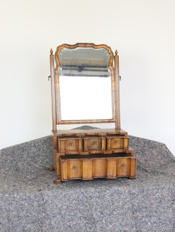 Shaped Swing Mirror with Walnut Cross grained Moulded frame