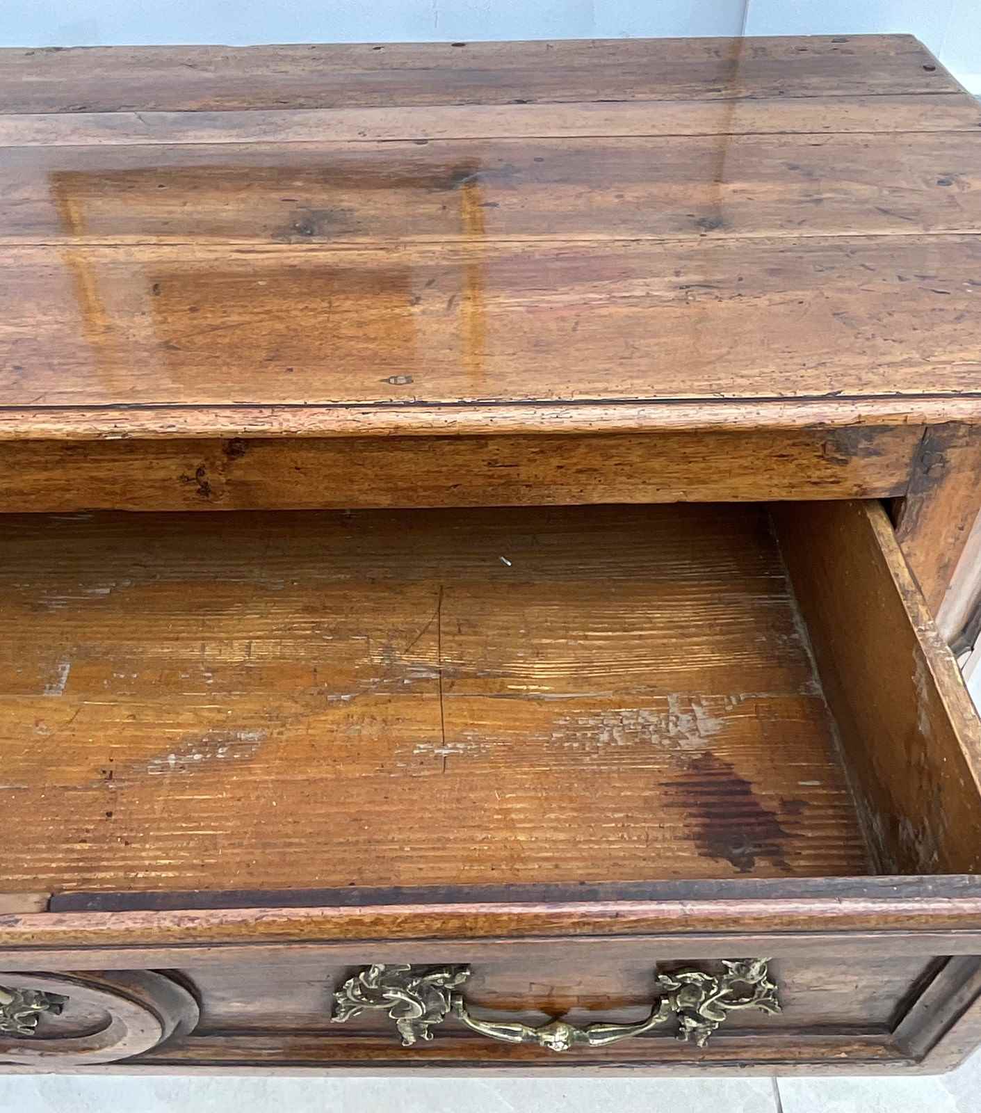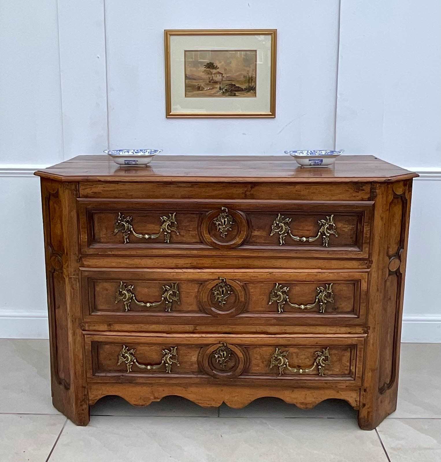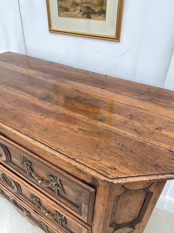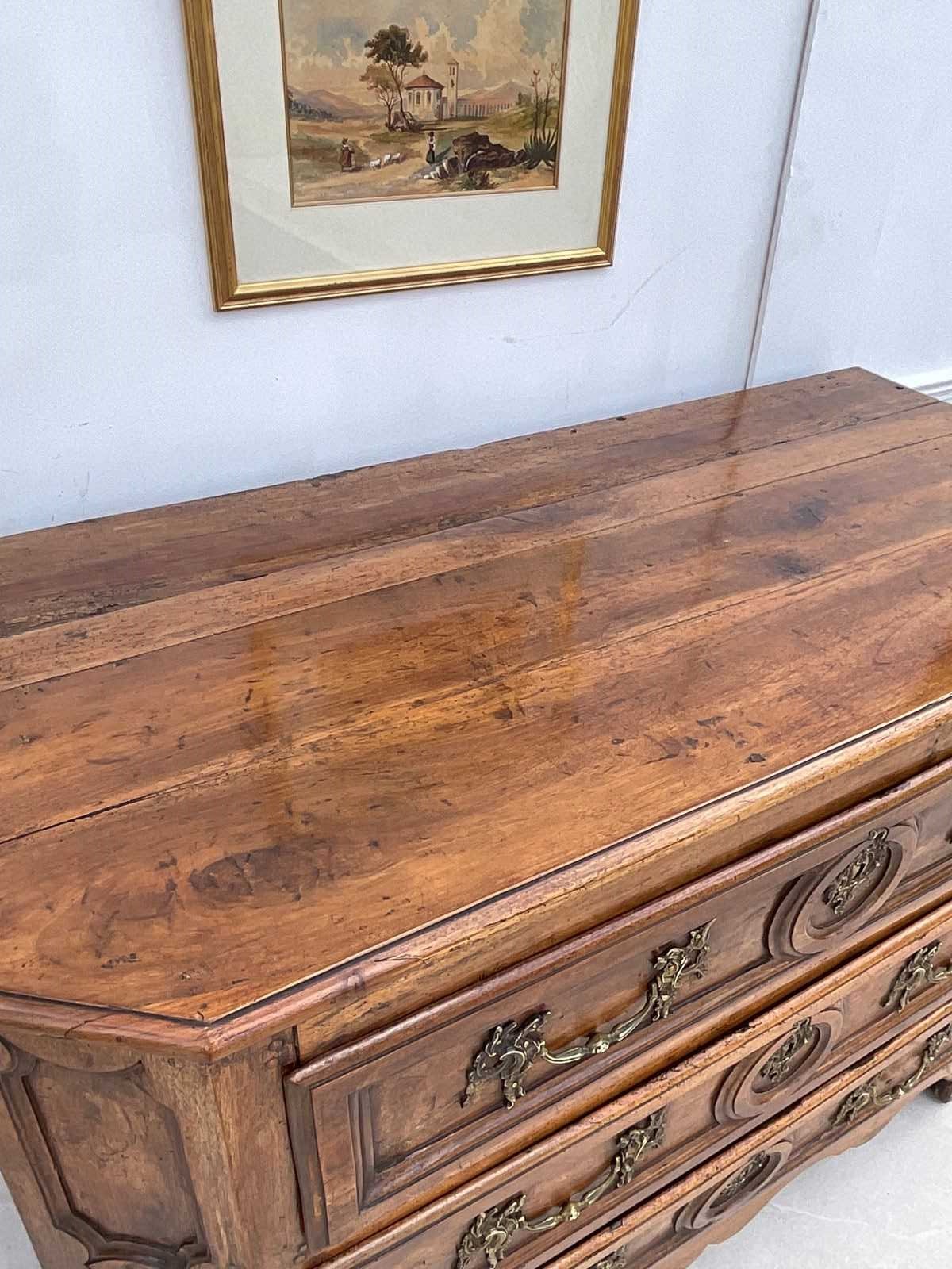 An impressive walnut commode of grand scale and excellent quality. Crafted in France in the late 18th century from wonderfully mellow walnut with quality rococo brass drop handles, it has acquired the most beautiful colour and patina.