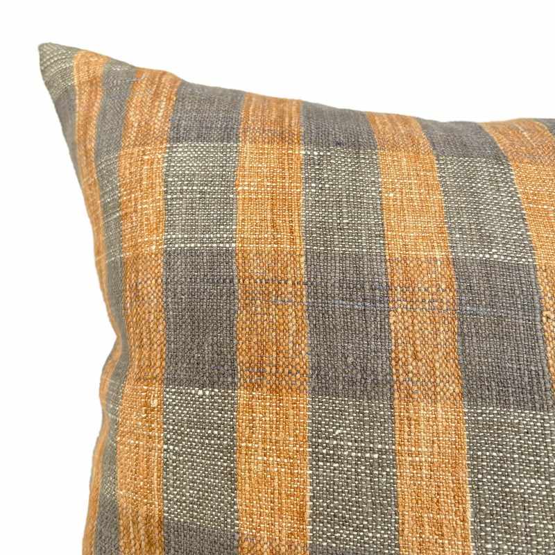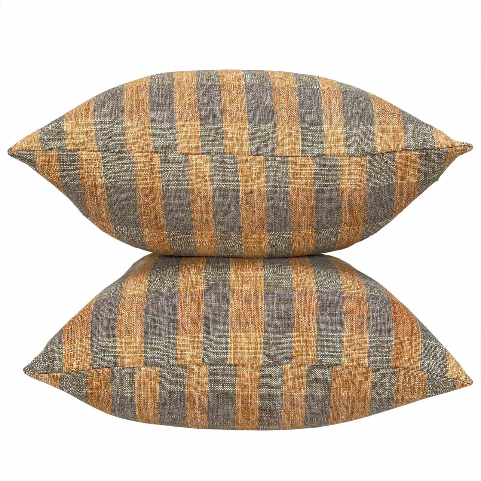 These cushions are made from a vintage, thick cotton blanket or bedcover from Adana in South Turkey. The cover was hand woven in hand spun cotton, that was coloured with natural dyes. The loom was narrow, 20" wide so widths were sewn together to get the bigger piece. As with many hand loomed textiles, the pattern isn't accurate so its been impossible to match it at the seams of the cushion. I think the colours are really beautiful. There are zip fasteners and deluxe feather inserts.