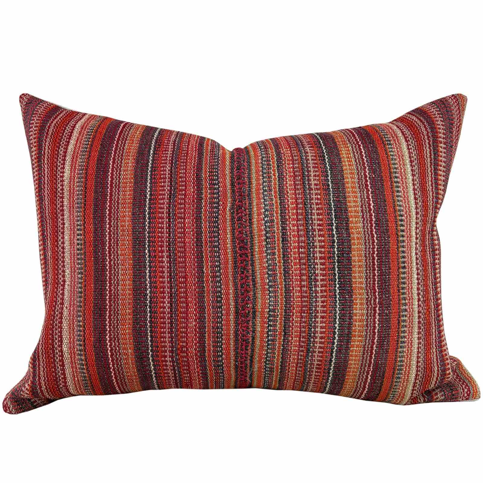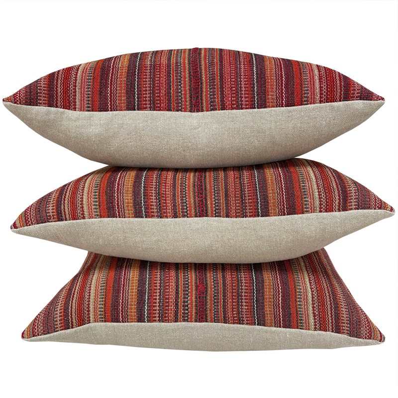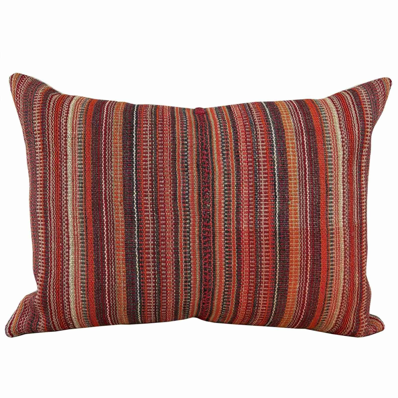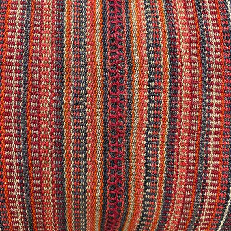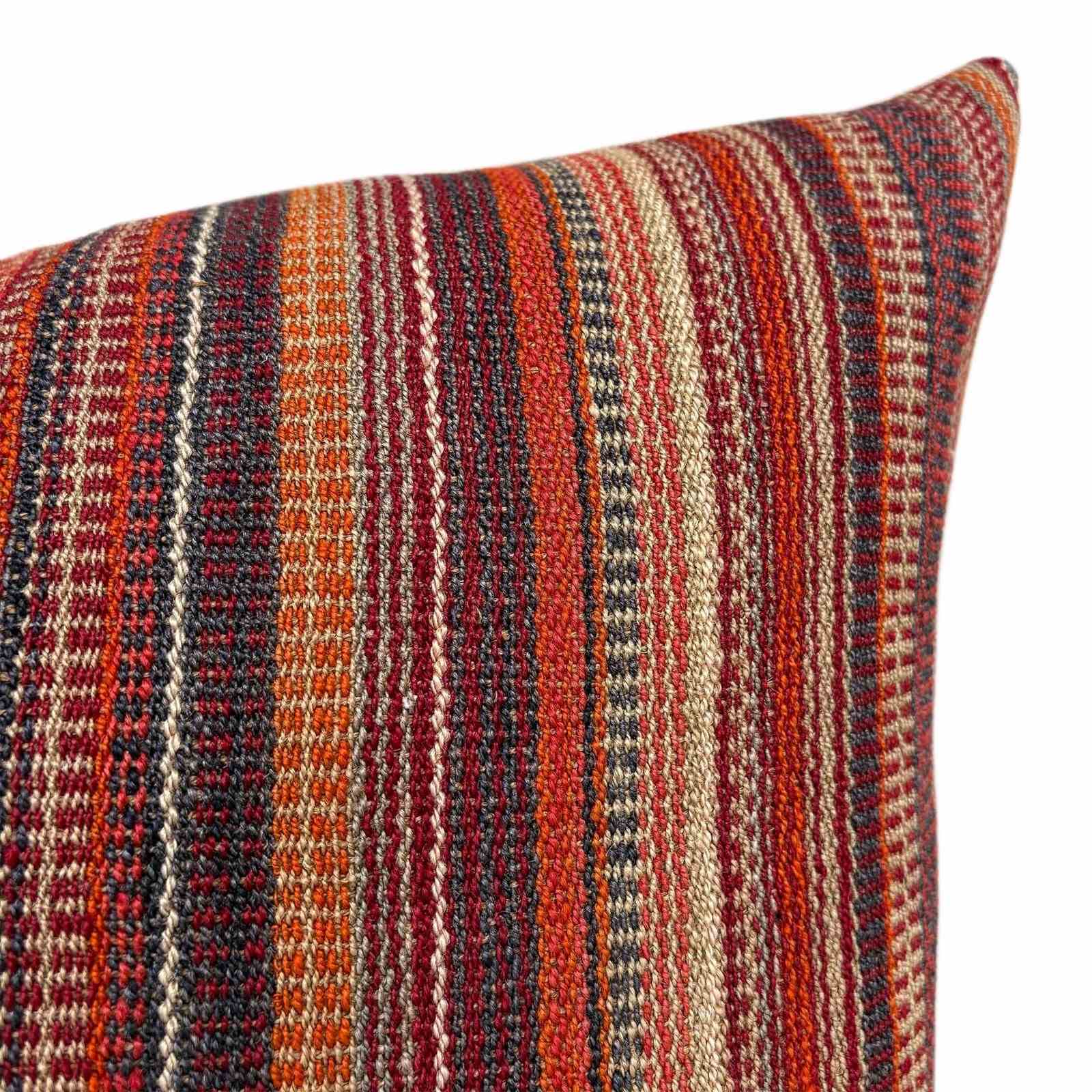 These cushions are made from a really beautiful vintage jajim from Bidjar in Northern Iran. Jajims have a wonderful drape and were traditionally used in nomadic households to cover or store belongings. They were hand loomed on narrow looms and the panels sewn together to make a larger textile. This jajim is woven from coarse wool with a really lovely palette of natural colours in tones of rust and brown, and makes beautiful and robust cushions. I've backed the cushions with a heavy natural coloured linen and there are zip fasteners and deluxe feather pads.