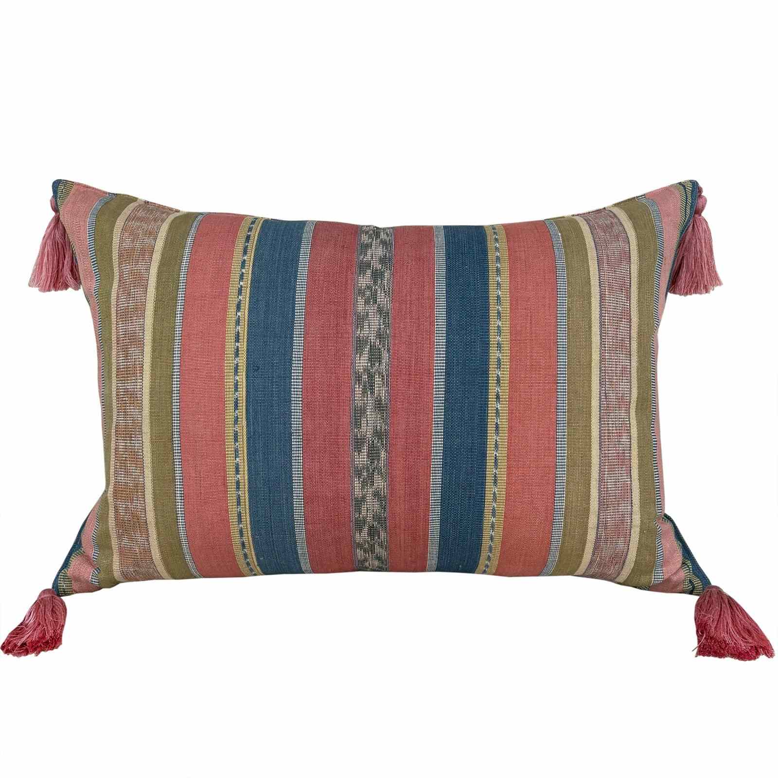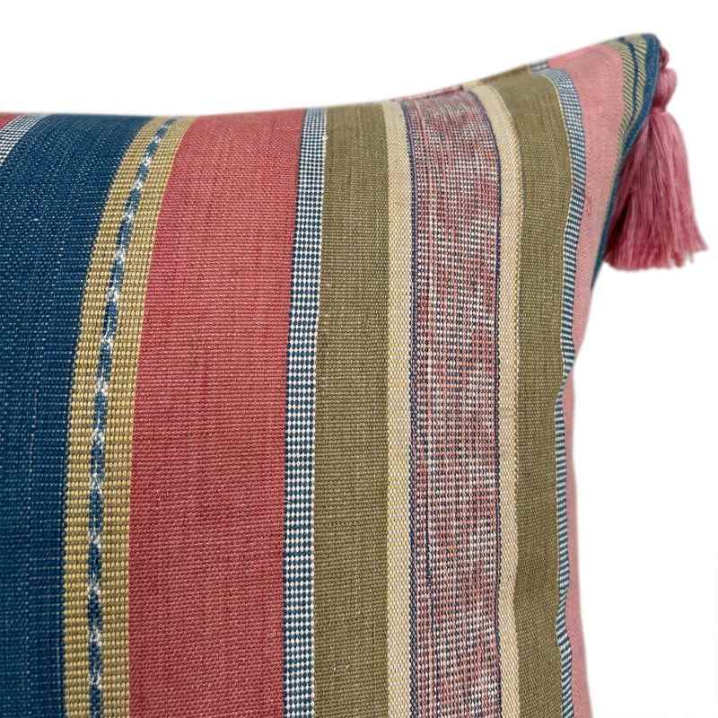 Flores Sikka Cushion, Pink And Blue With Tassels