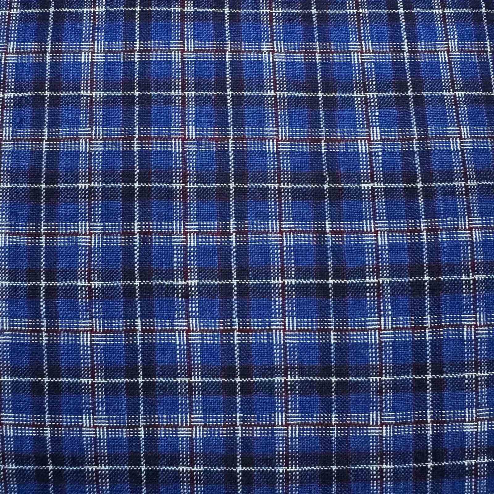 These cushions are made from a vintage hand woven textile from the weaving district around Shanghai. They are made from hand spun cotton that has been coloured with natural dye and this is predominantly a lovely mid blue colour with pinstripes in off white and berry. The cushions have zip closures and deluxe feather inserts.