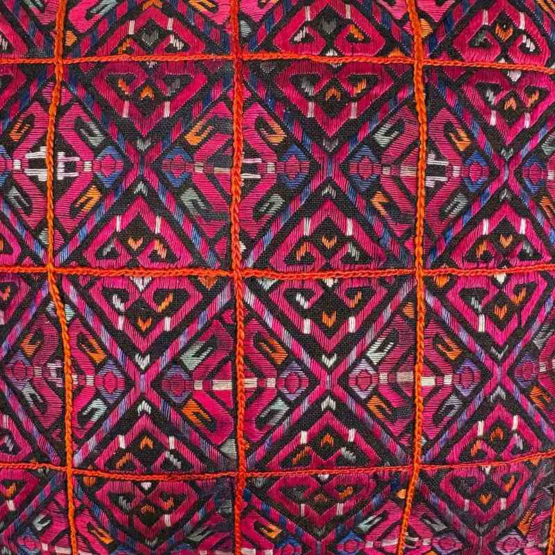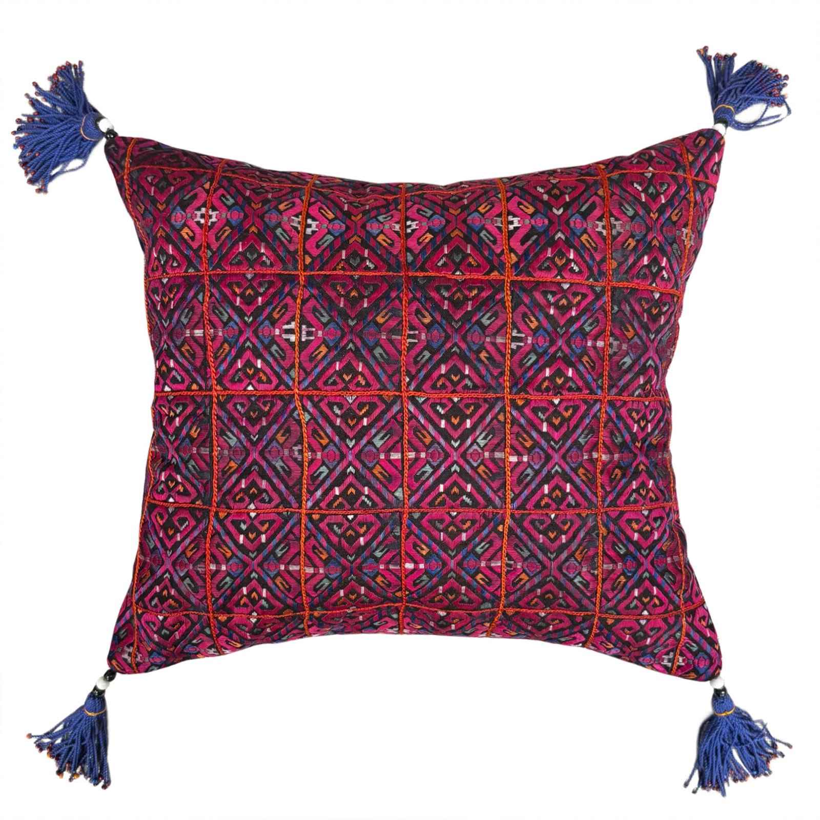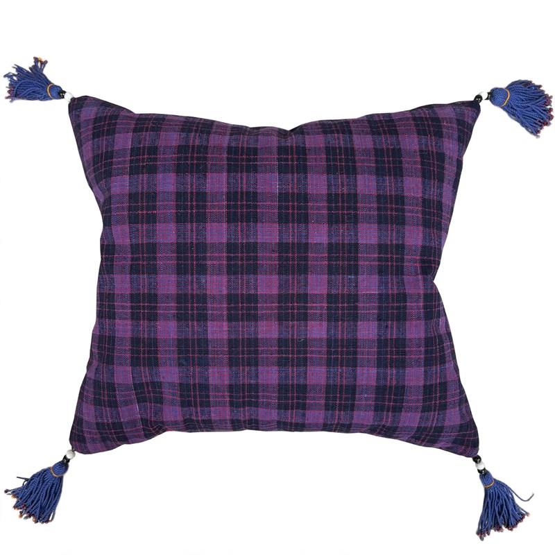 This wonderful big fat lavender pillow is made from a vintage embroidery rescued from a Miao baby carrier. The embroidery is in silk and is beautifully executed in jewel like colours, orange, red, pink and blue. I've backed the pillow with a vintage hand loomed textile in a dark pink check and added vintage beaded tassels. The pillow is stuffed with Provencal lavender selected for its long lasting scent.