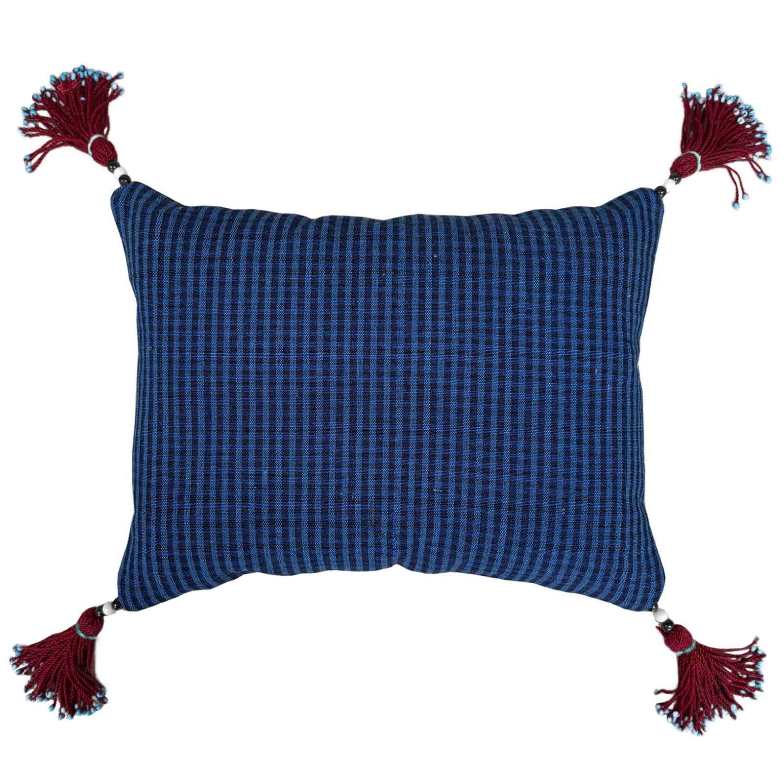 This wonderful lavender pillow is made from a vintage embroidery rescued from a Miao baby carrier. The embroidery is in silk and is beautifully executed in jewel like colours, orange, red, pink and blue. I've backed the pillow with a vintage hand loomed textile in a ditsy dark blue check and added vintage beaded tassels. The pillow is stuffed with Provencal lavender selected for its long lasting scent.