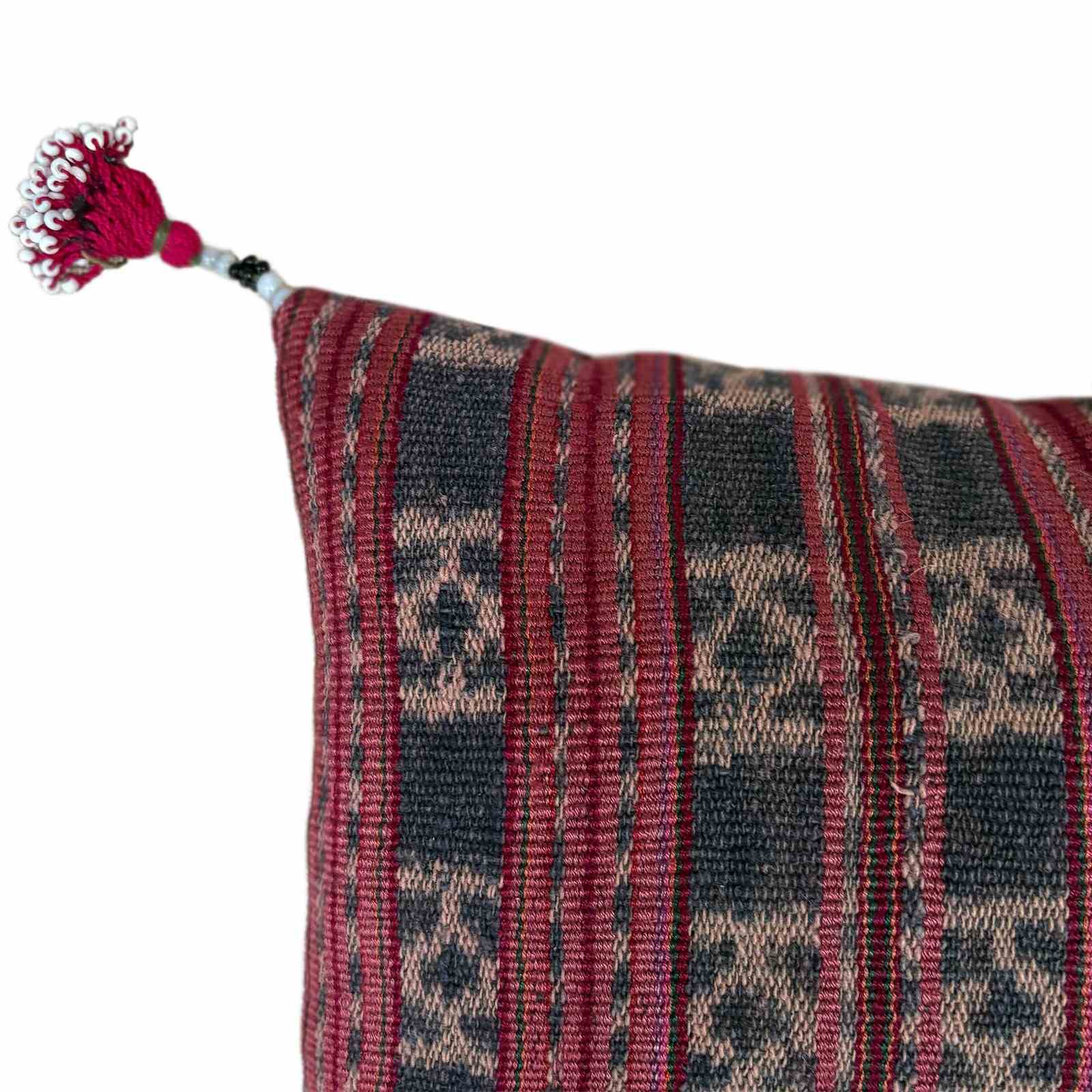 These little pillows are made from a mid century ikat from Savu, Indonesia. The ikat was handwoven on a narrow loom in thick cotton and coloured with natural dyes. The colours have faded with time to this wonderful soft raspberry and grey colours. I've backed the cushions with a hand woven textile from East China and added little vintage beaded tassels also pink. The pillows are stuffed full of Provencal lavender, selected for its long lasting scent. price includes VAT and Uk delivery
