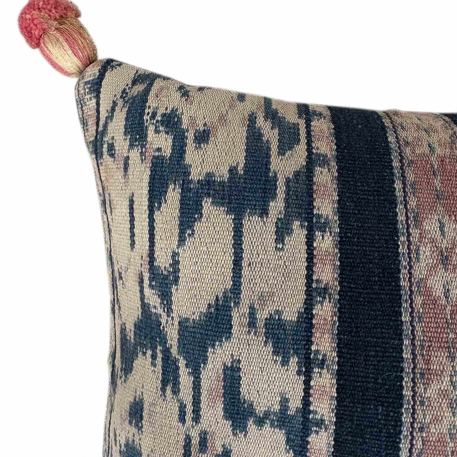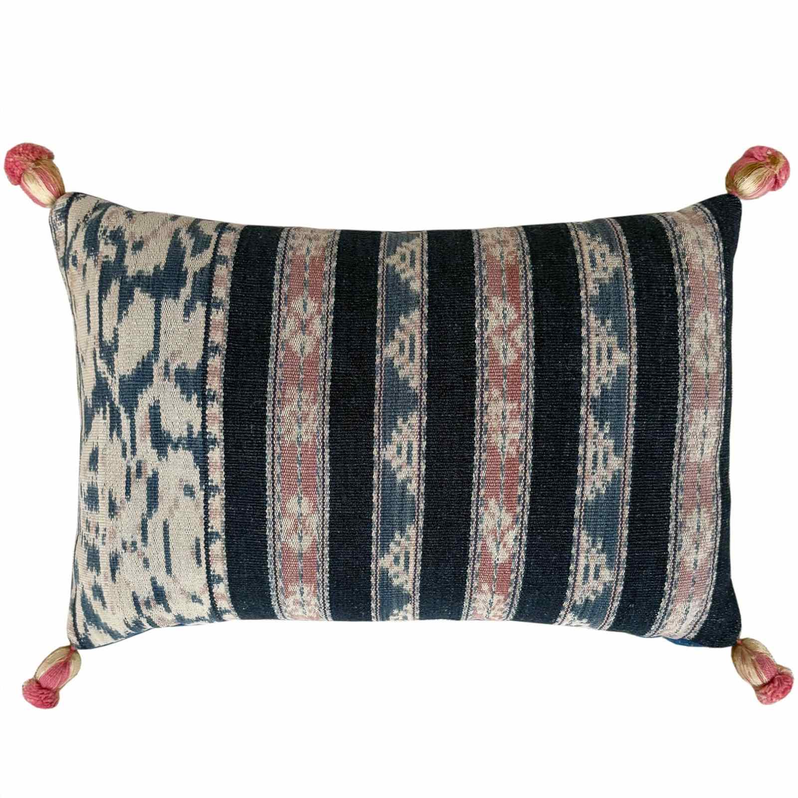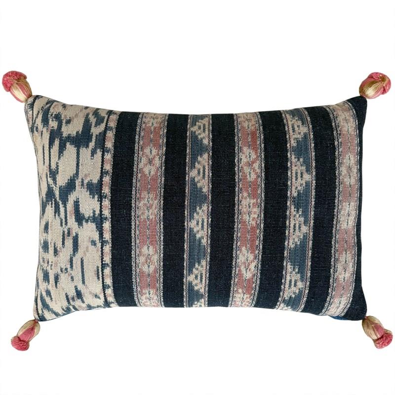 These little pillows are made from fragments of a vintage Savu tube skirt. The textile was hand woven and coloured with natural dyes. The colours are lovely and faded to light and dark indigo, stone and pink.