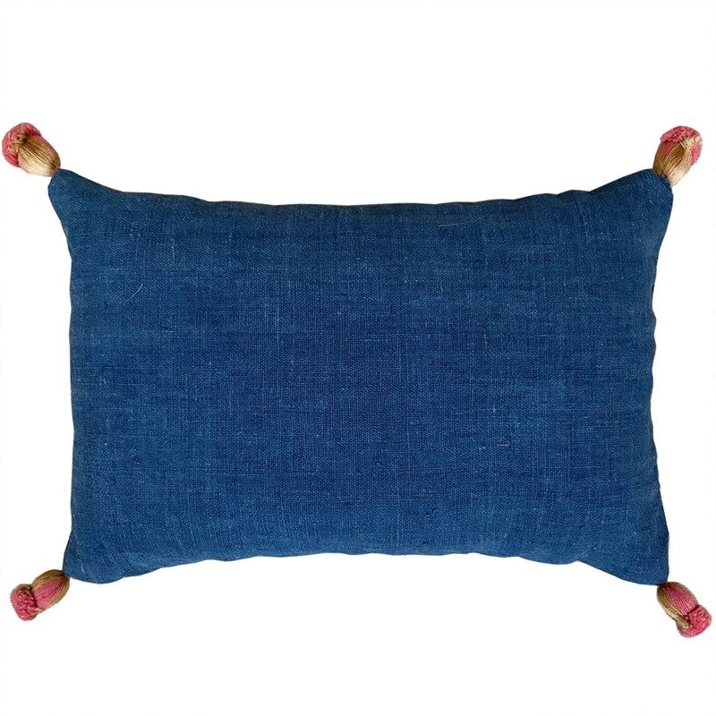 I've backed the pillows with another indigo hand dyed cotton textile. There a little acorn tassels at the corners in pink and gold. The pillows are choc full of Provencal lavender selected for its long lasting scent.