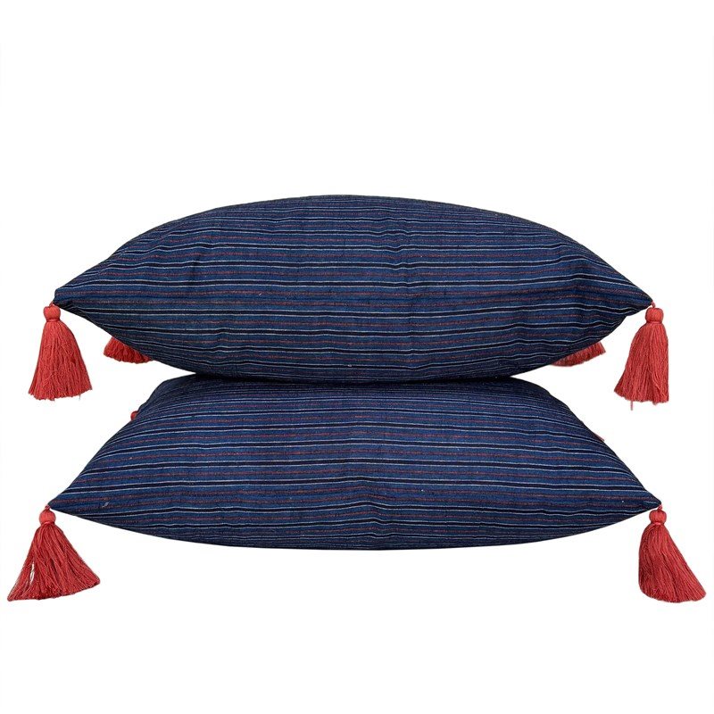 Songjiang Cushions, Blue With Rust Tassels