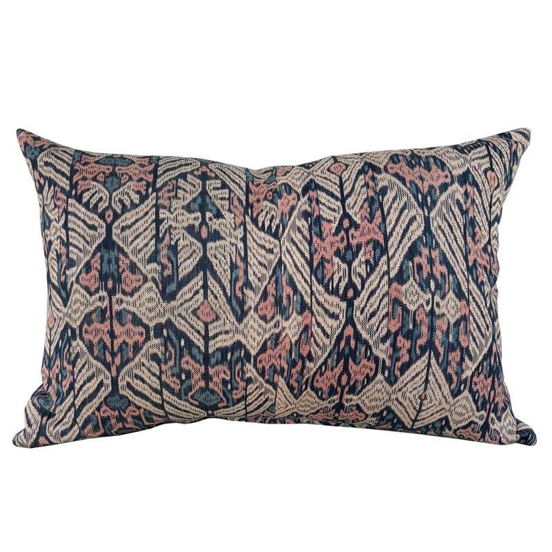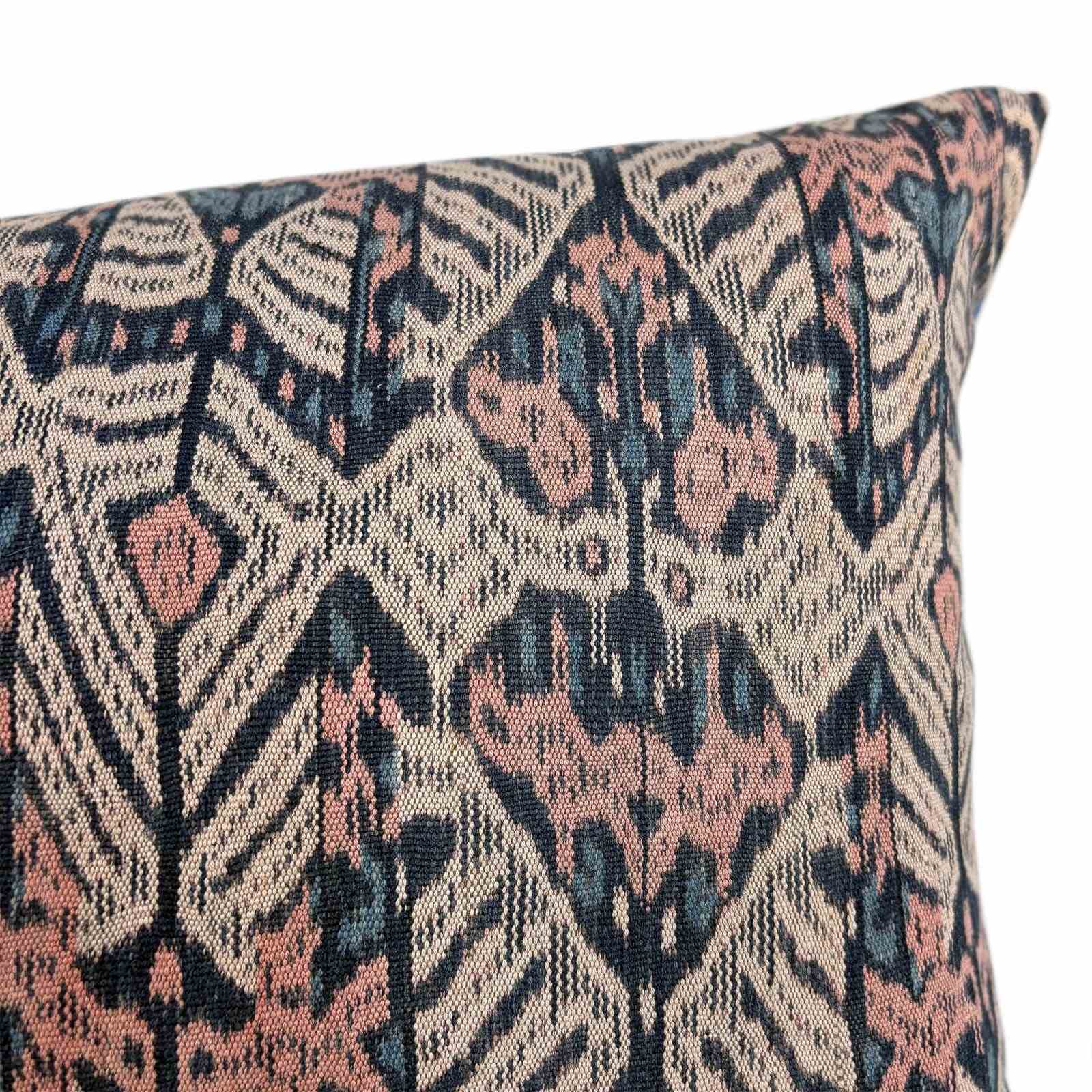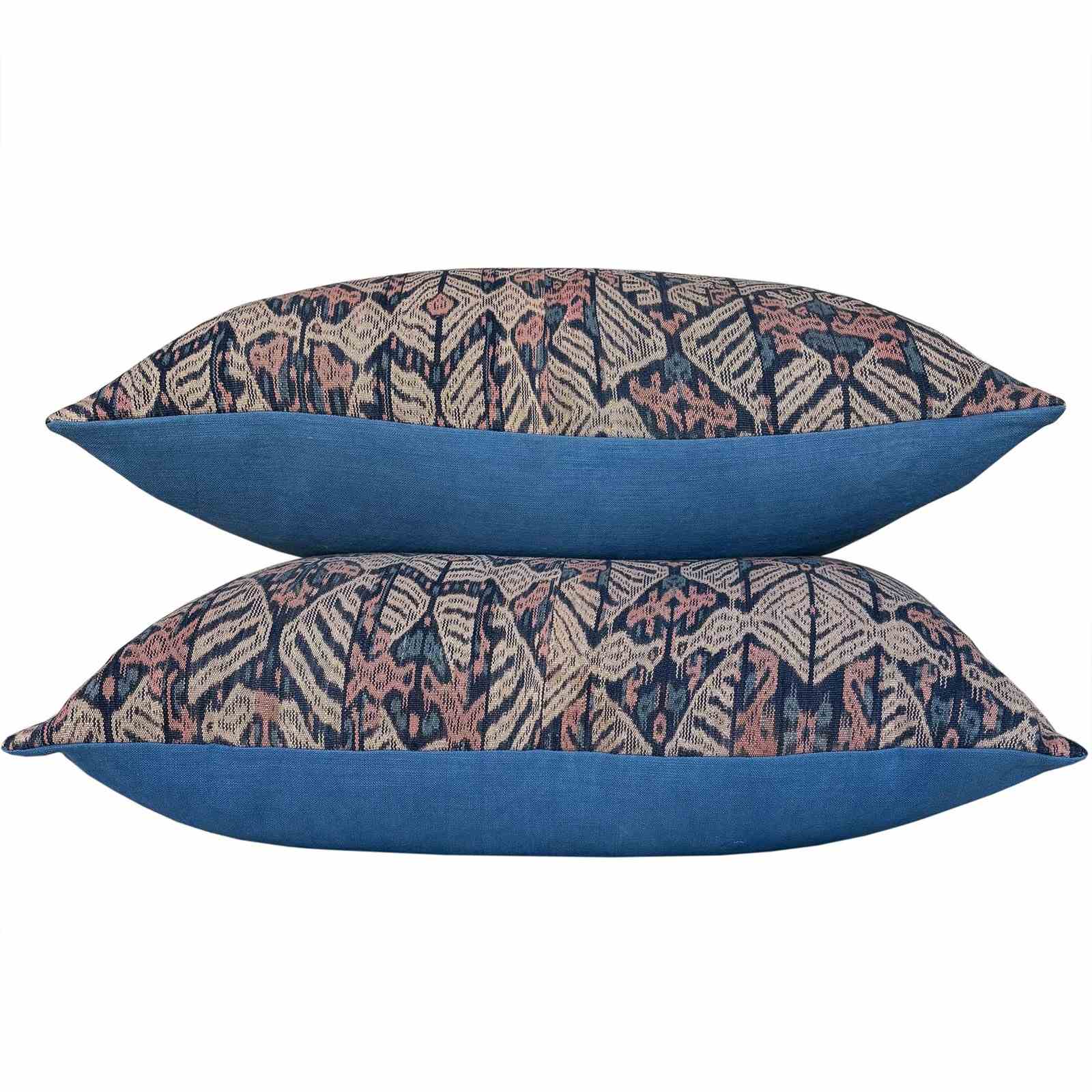 These gorgeous cushions are made from a vintage hand loomed textile from Timor, Indonesia. The textile was rescued from a tube skirt, of thick cotton, woven using the ikat technique. The colours are all natural and the pattern is known as futus. I've backed the cushions in an indigo dyed cotton which is a lovely light blue. There are zip fasteners and deluxe feather inserts.