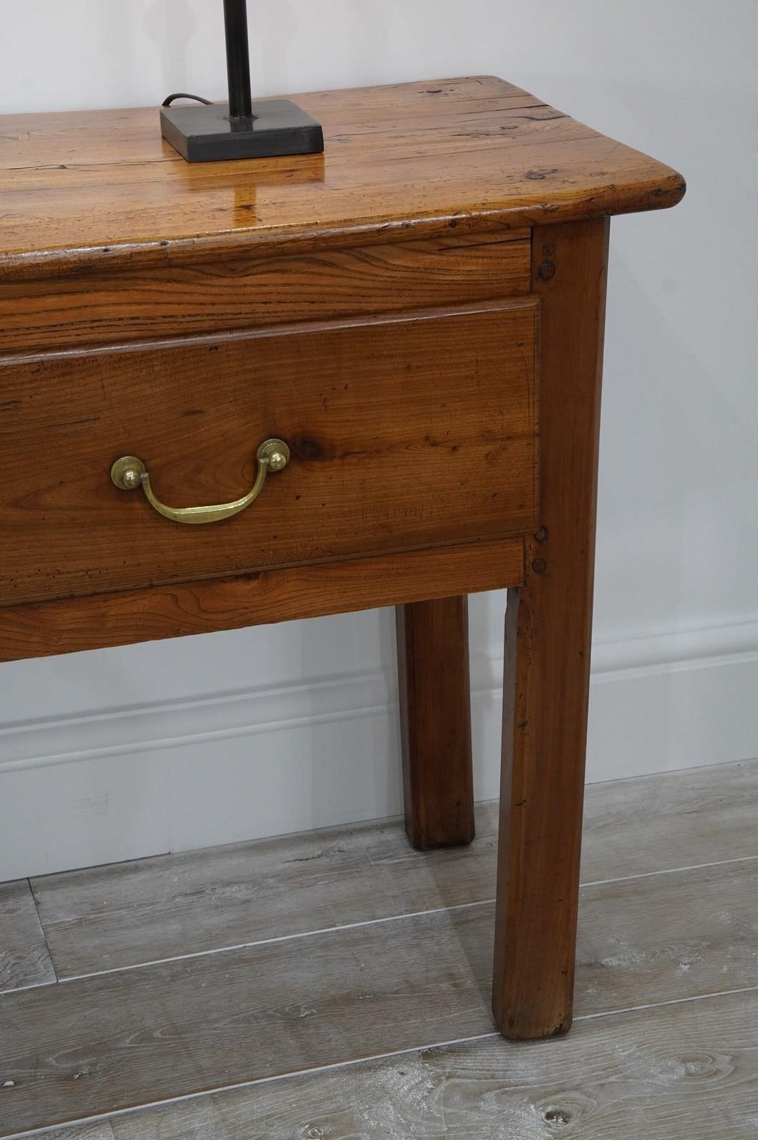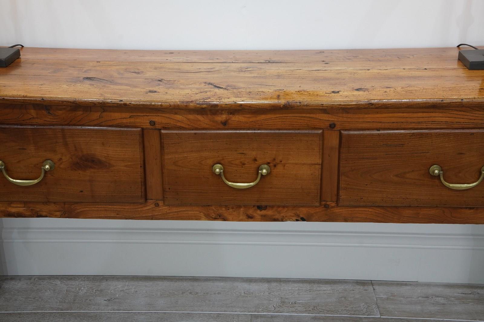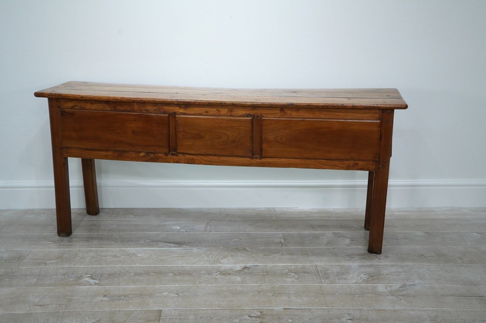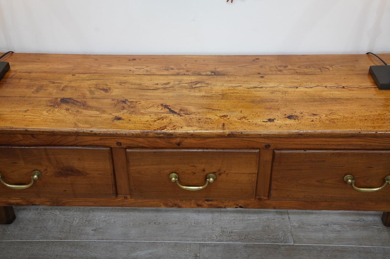 Raised on four slightly chamfered sturdy legs. The solid Elm timbers have developed the most gorgeous golden colour and rich deep patina over the passage of time. A superb heavy quality French Elm server that will blend comfortably with any style, old or new.