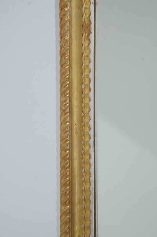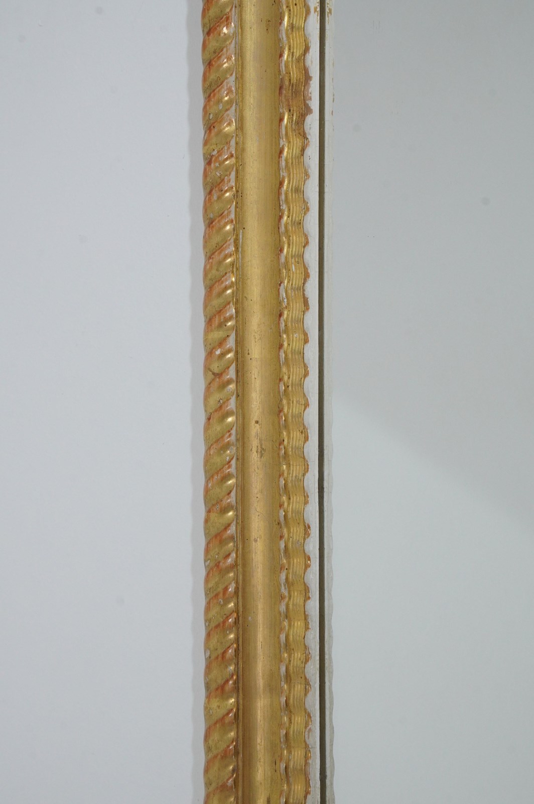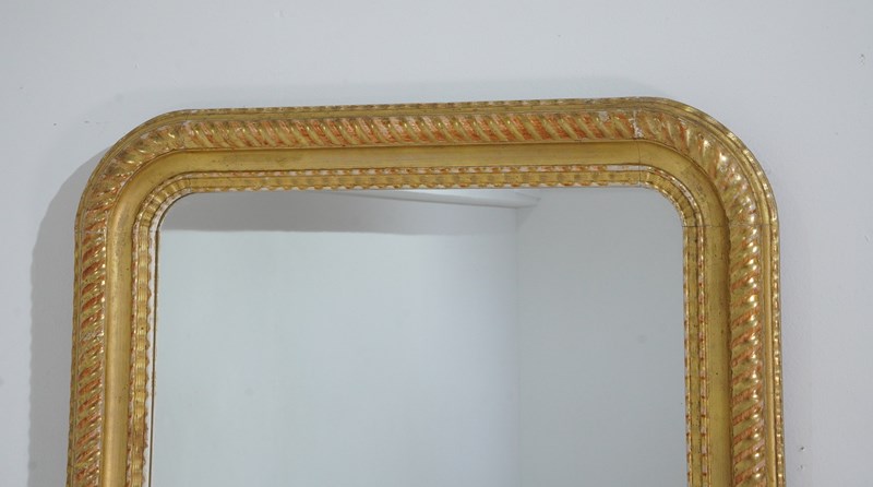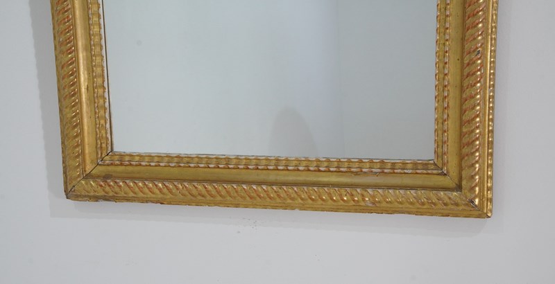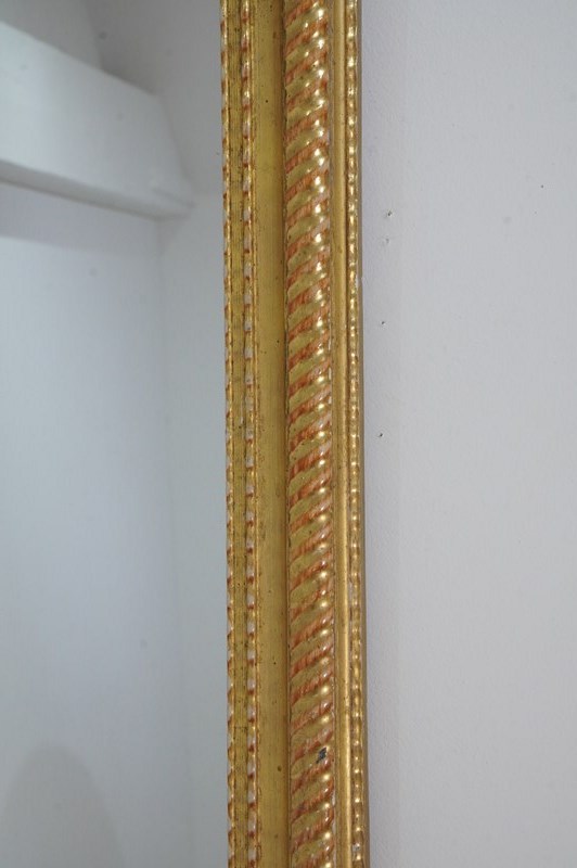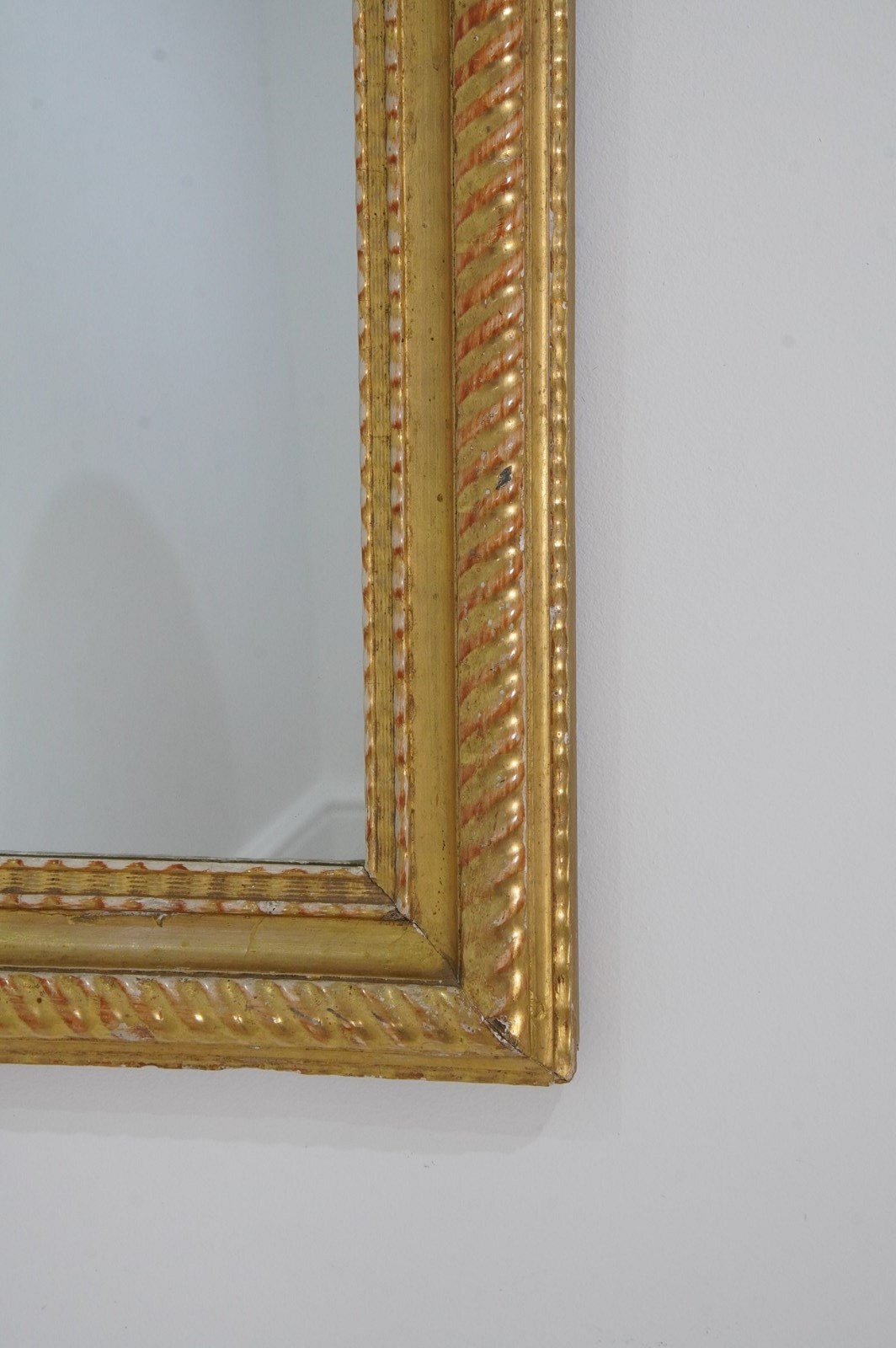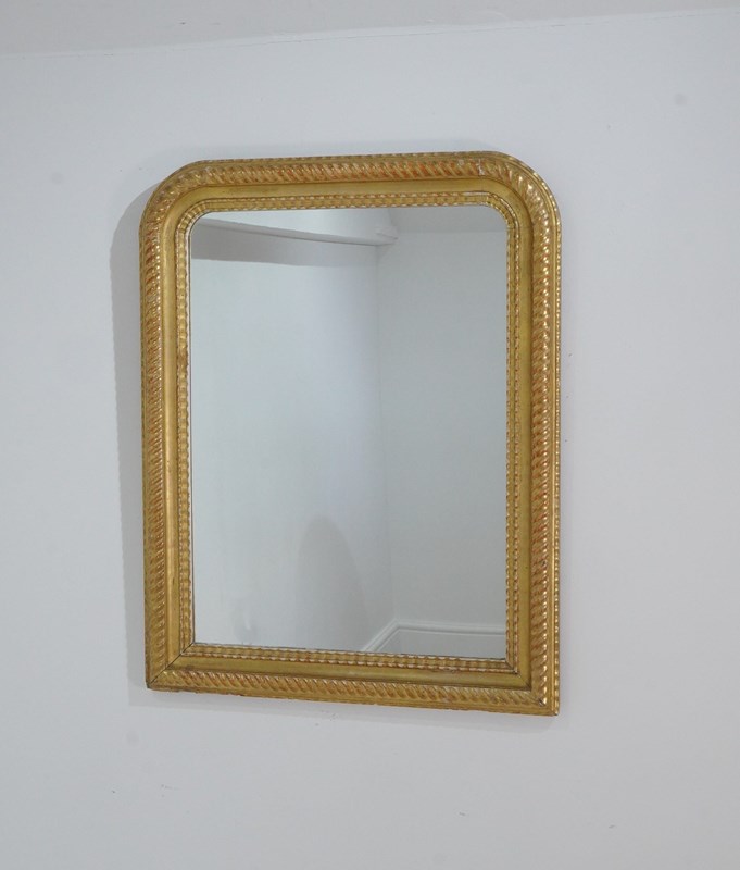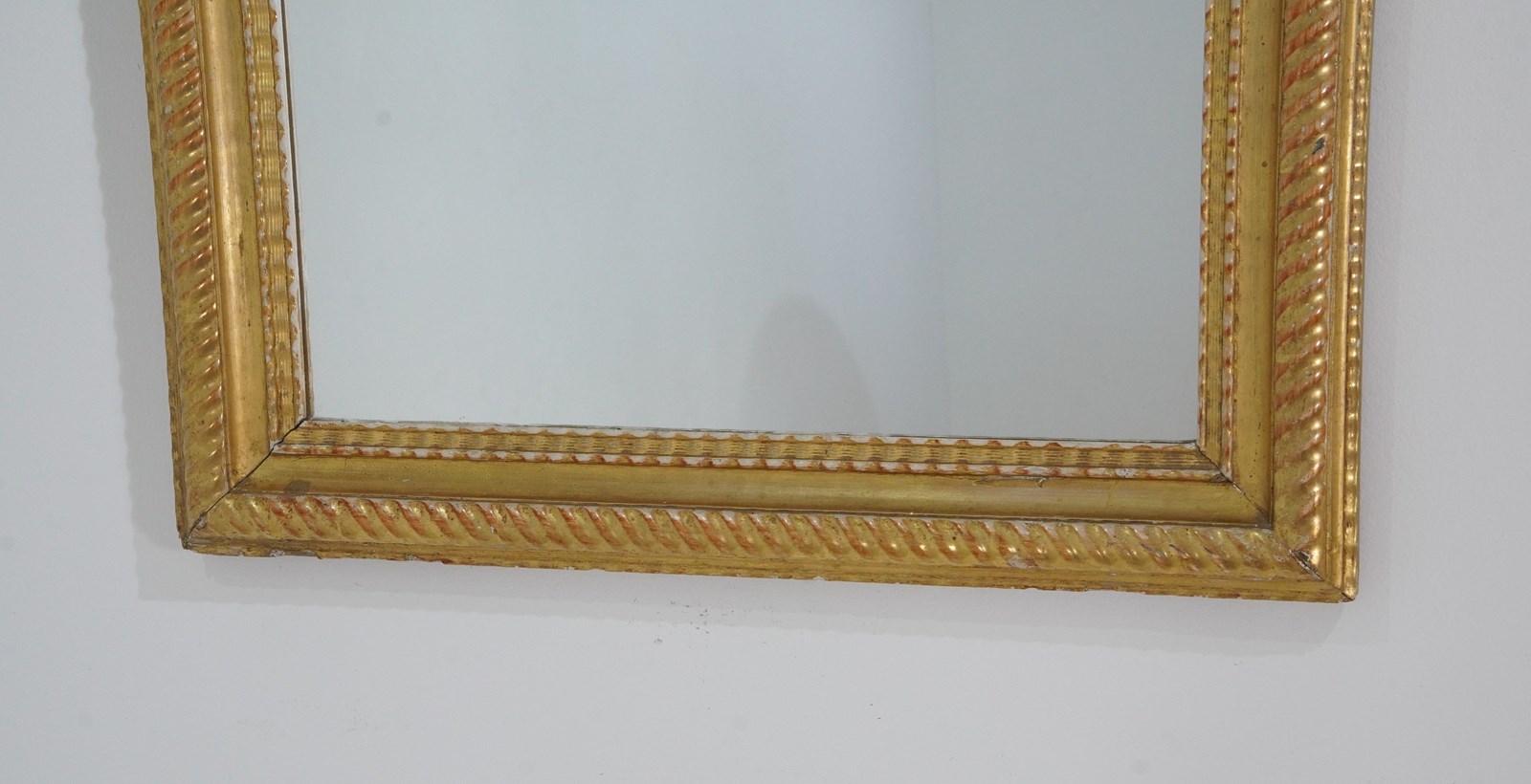 A 19th century French wall mirror with decorative raised ripple edge moulding. Lovely warm gilded surface with just a little base colour shining through. Original mercury glass mirror plate and back boards.