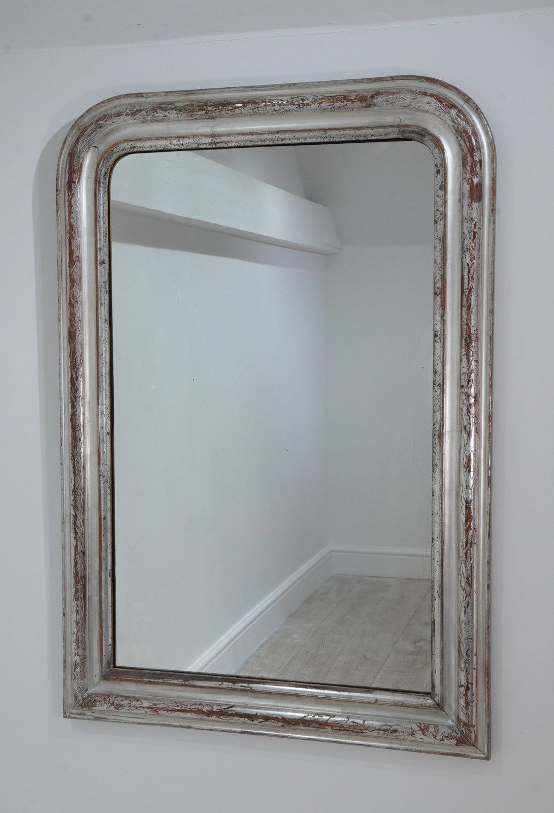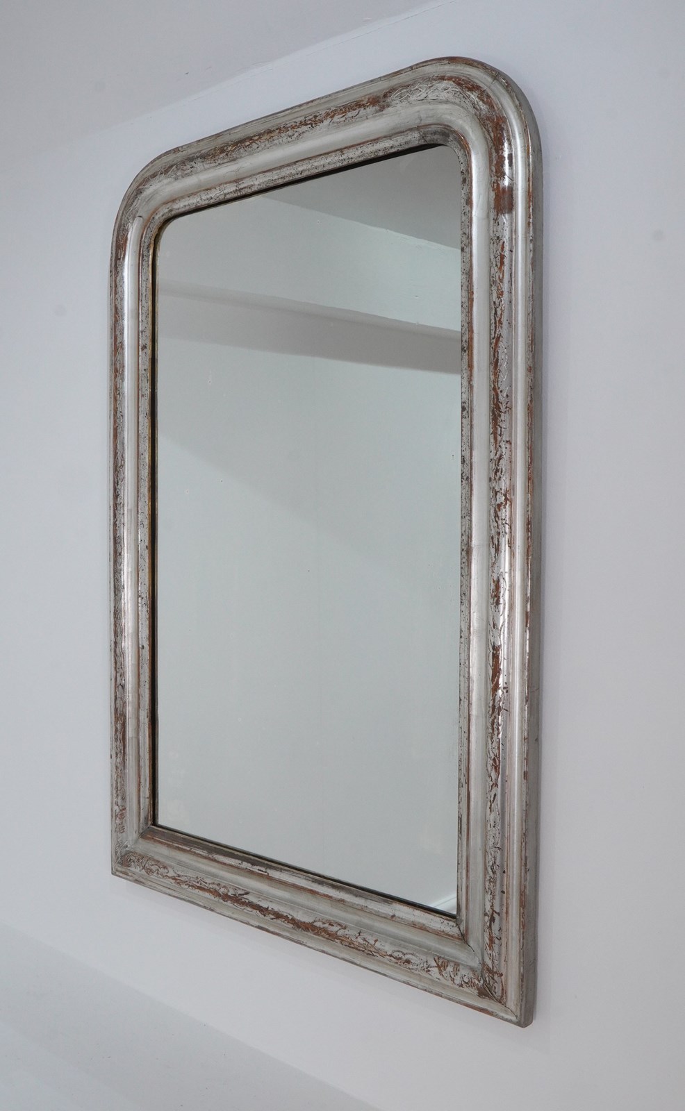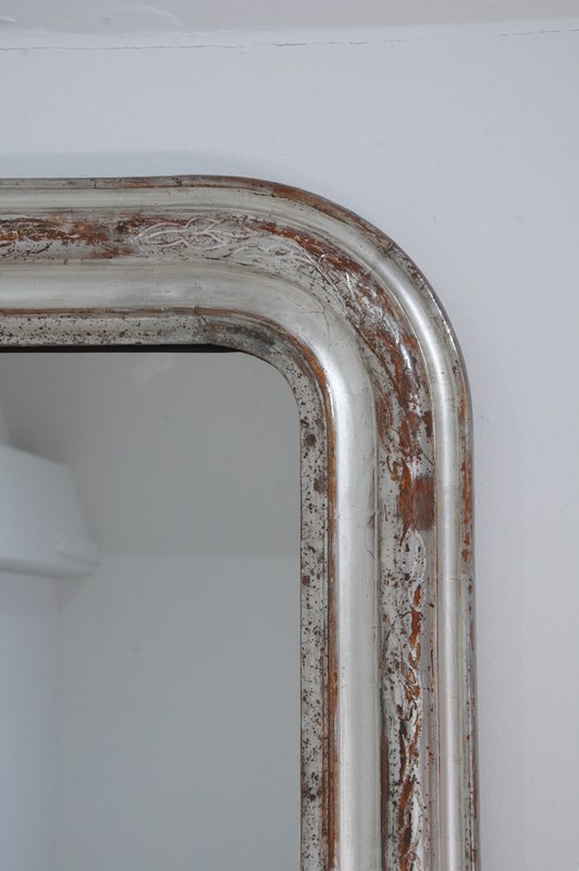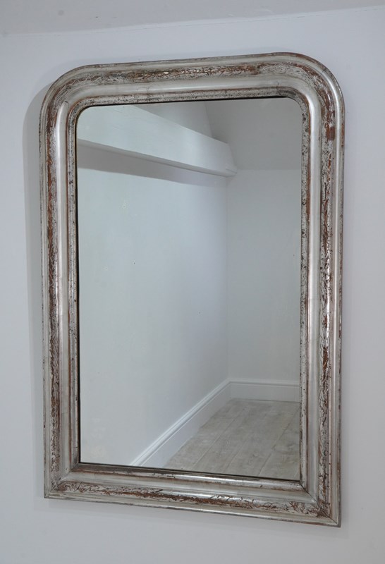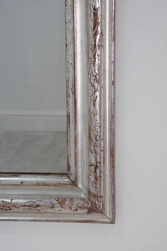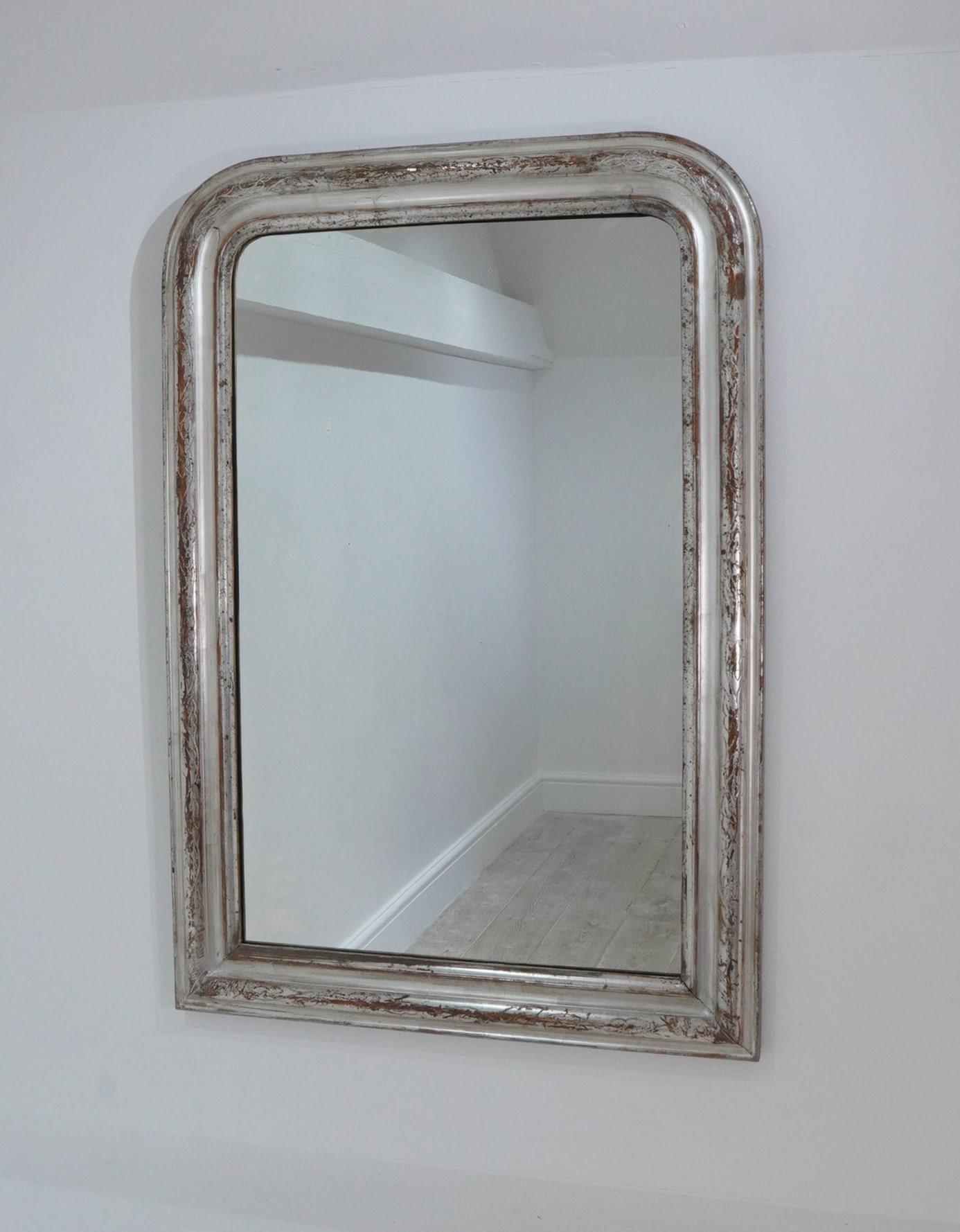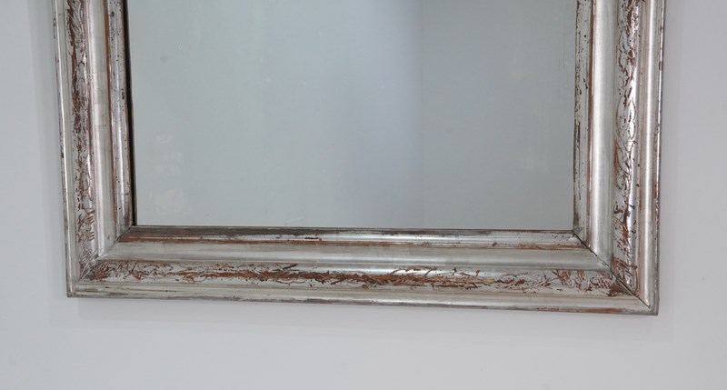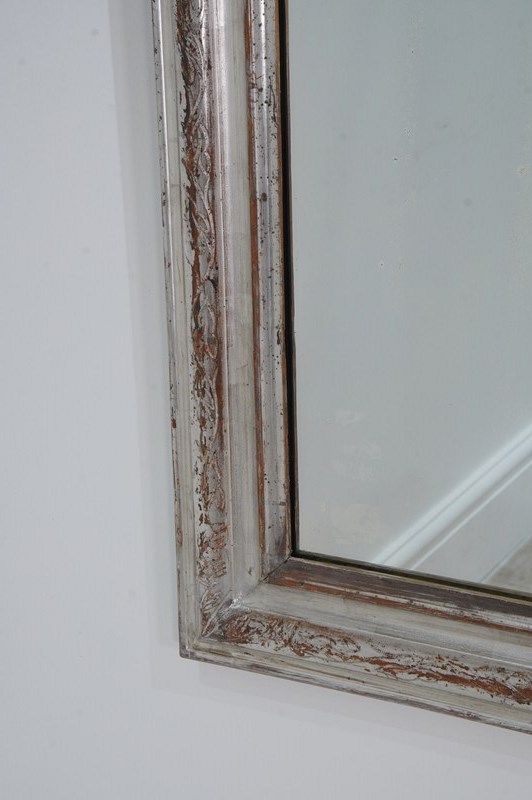 A 19th century silver leaf wall mirror. Although a little rubbed in places this pretty mirror holds plenty of deep silver lustre. The warm reddish base colour revealed is a pleasing contrast to the silver.
