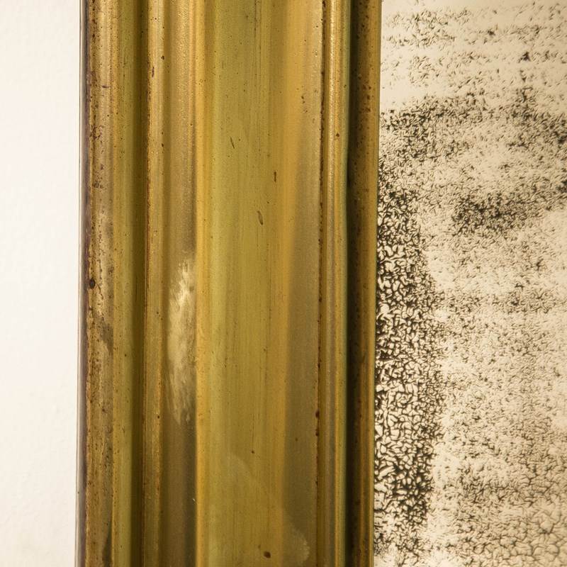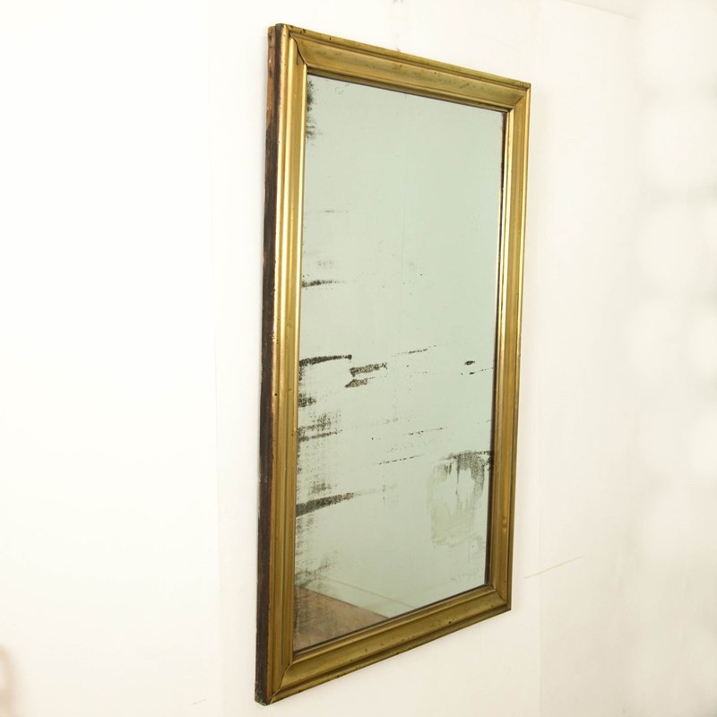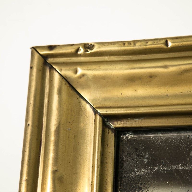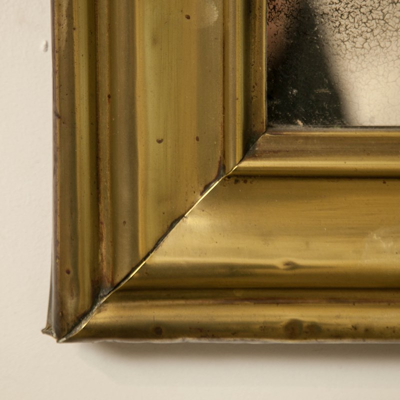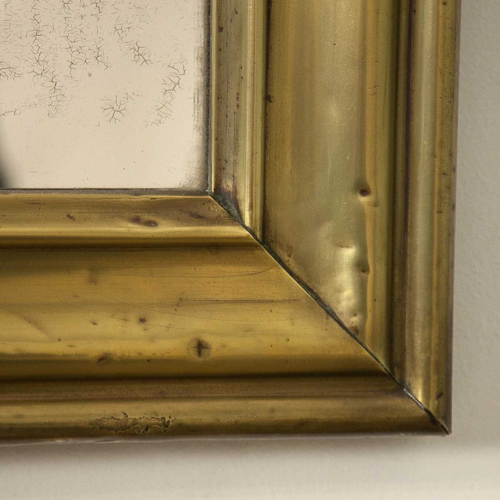 Large, French, Brass Bistro mirror. A moulded brass frame formed around a foxed mirror plate.