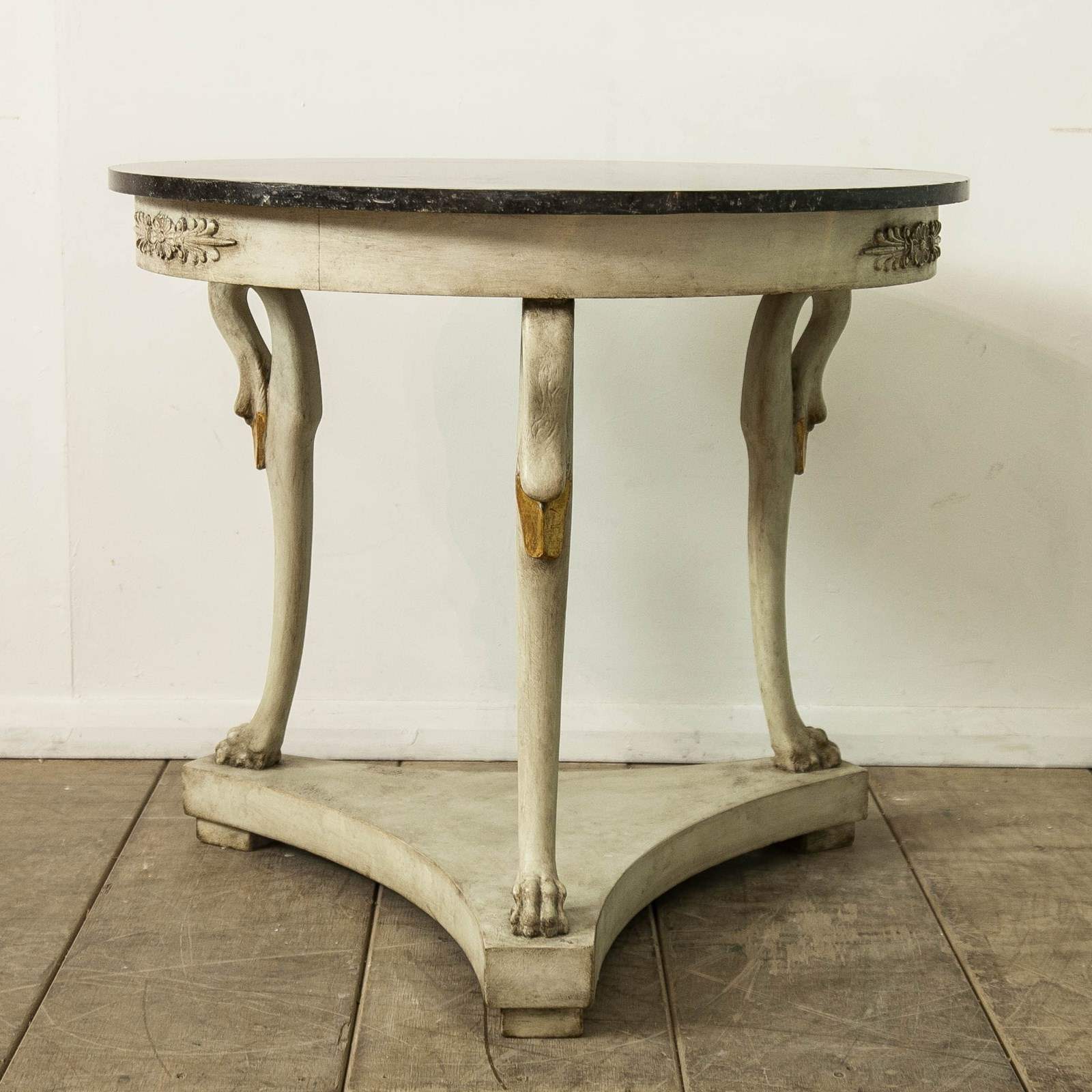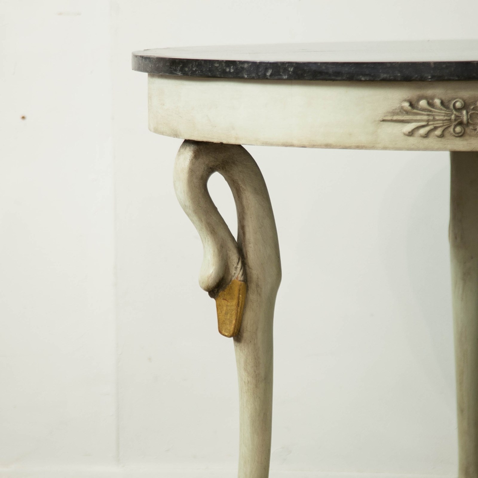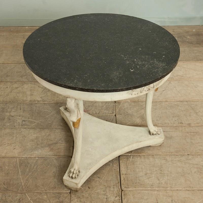A French, Louis XVI style painted Gueridon with a Belgian black marble top.