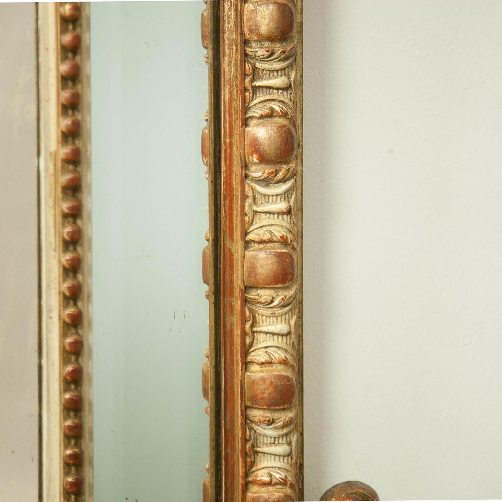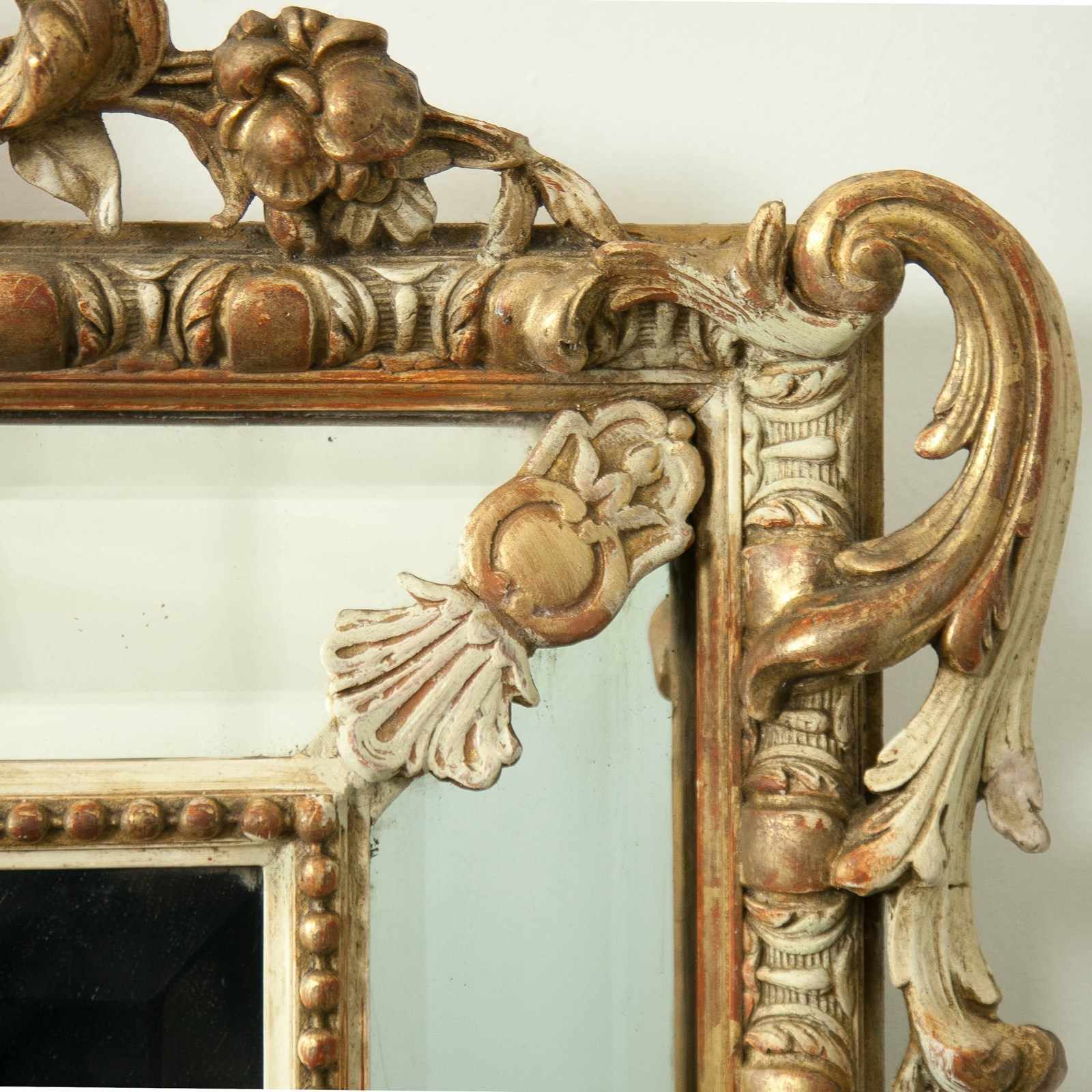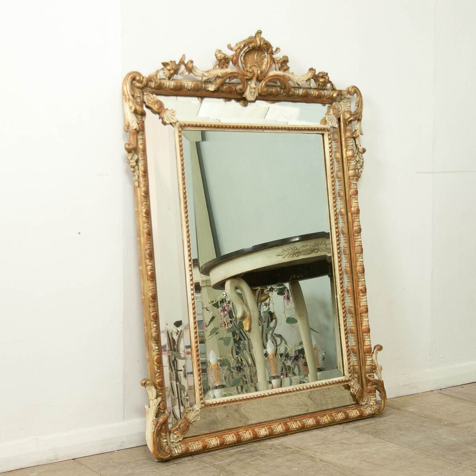 Very good 19th c French, Cushion mirror. Gilded and gesso moulded scrolls and shell motif adorning beaded and eggand dart frames. Retaining it's original bevelled mirror plates.