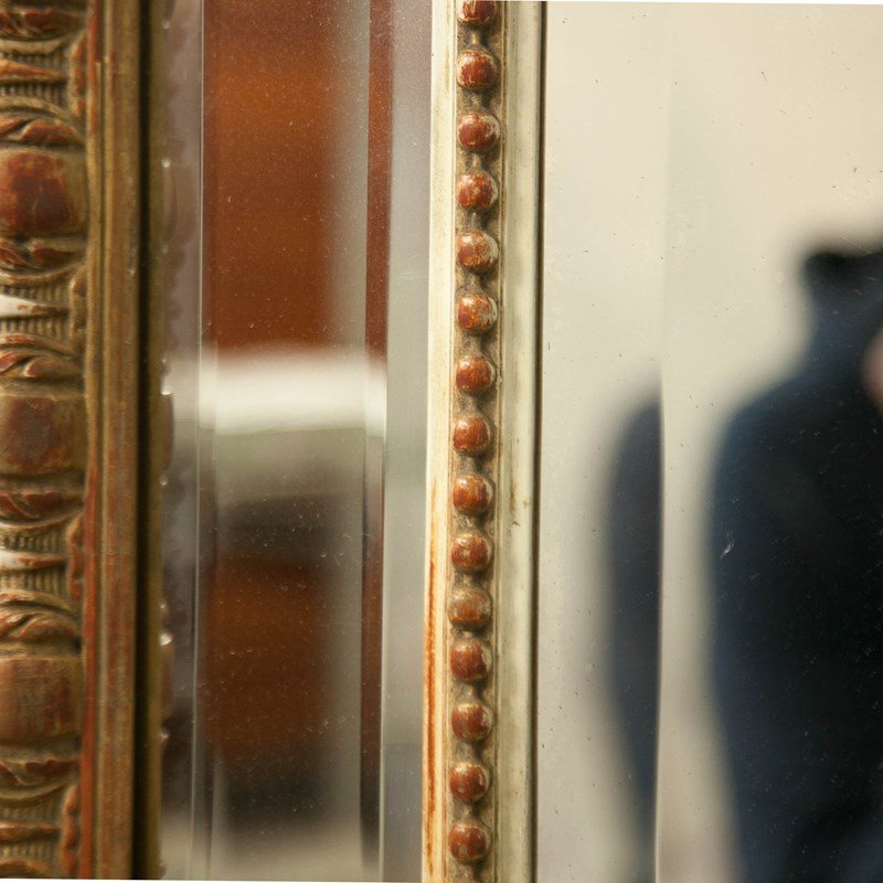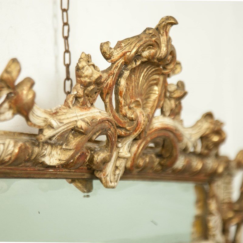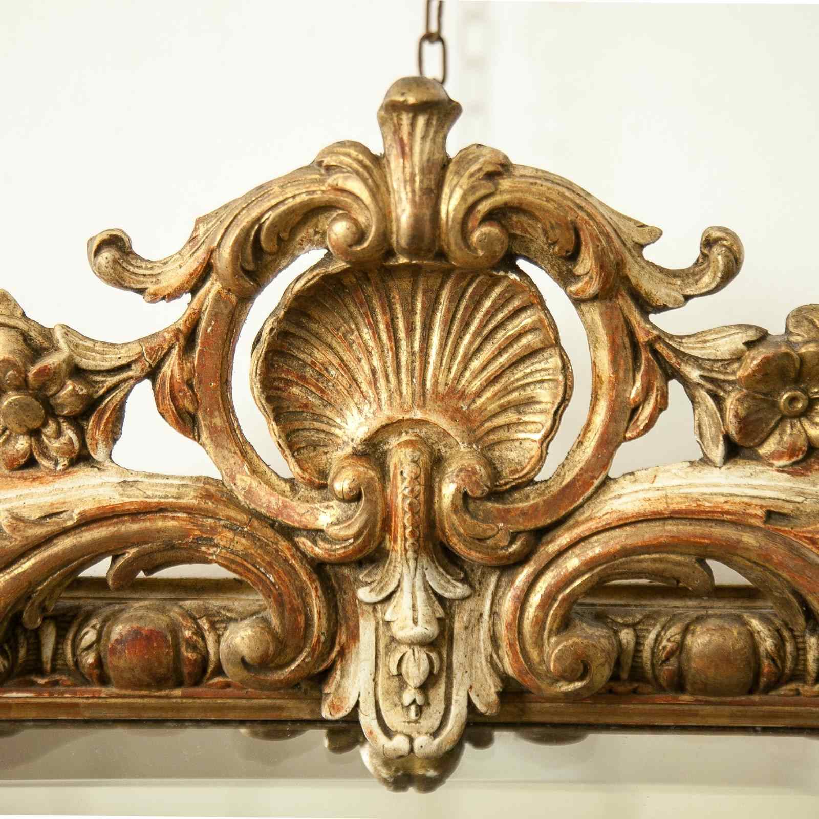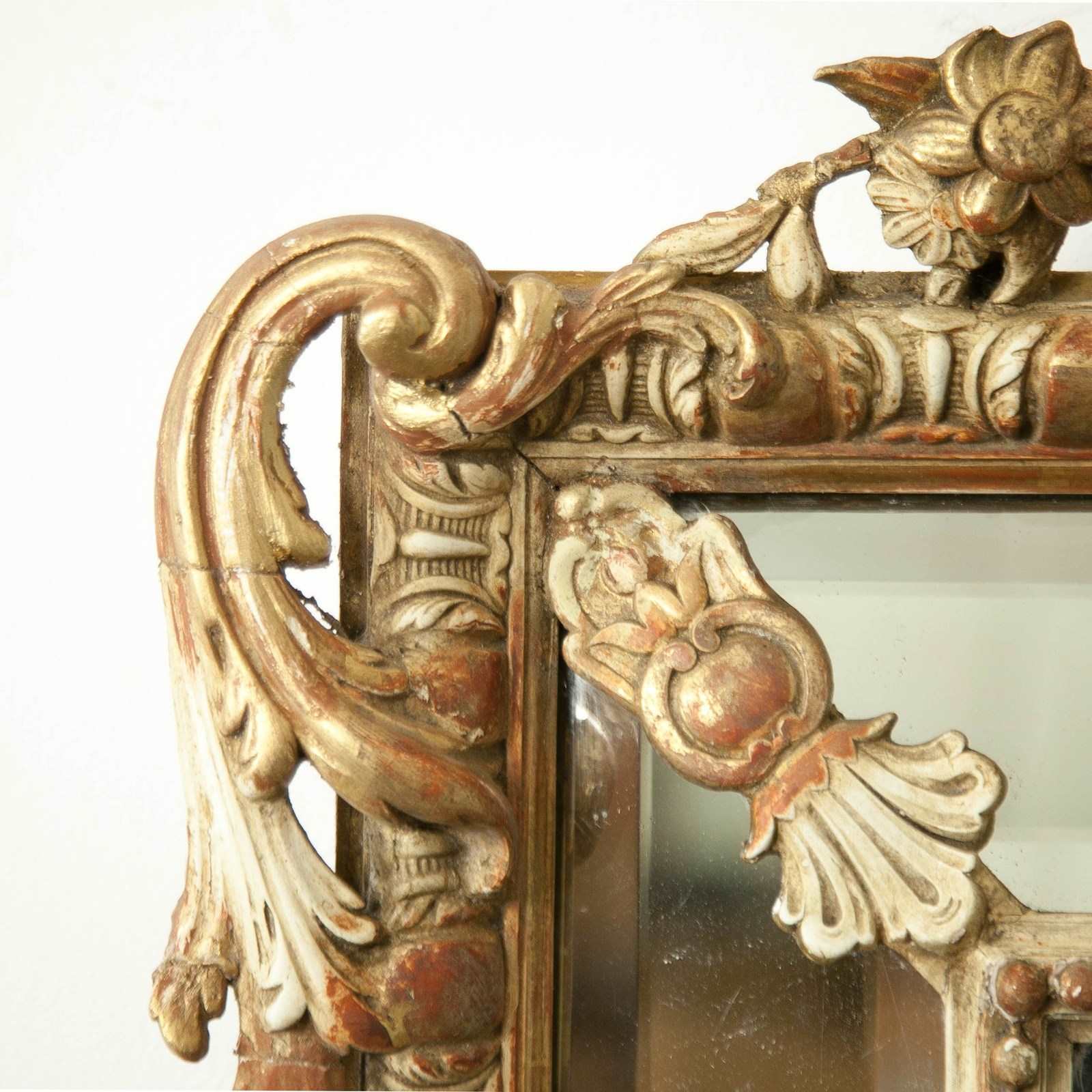 Very good 19th c French, Cushion mirror. Gilded and gesso moulded scrolls and shell motif adorning beaded and eggand dart frames. Retaining it's original bevelled mirror plates.