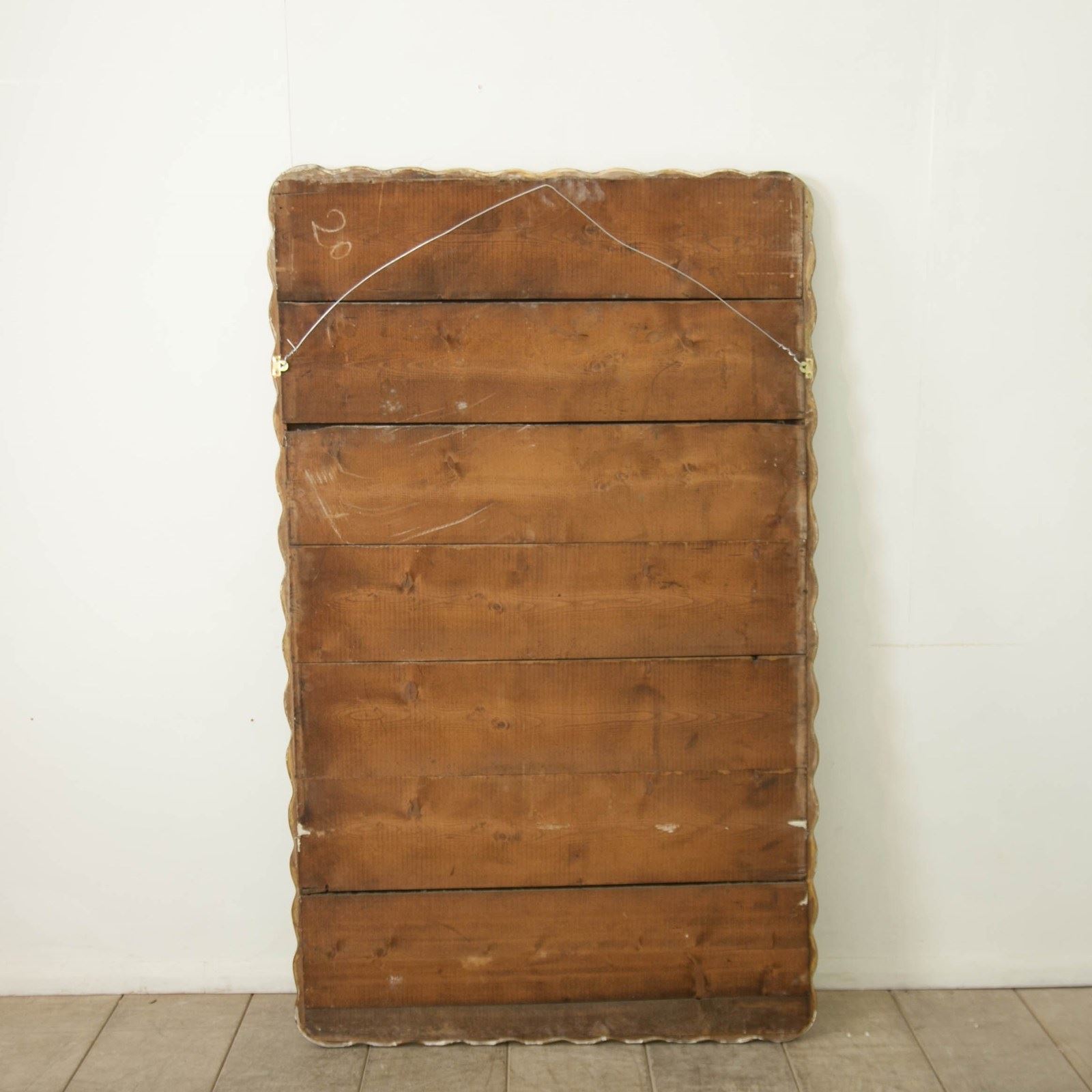 A very stylish and large French, giltwood mirror. Carved, wavey form, retaining it's original mirror plate and backing boards. Can be hung portrait or landscape.