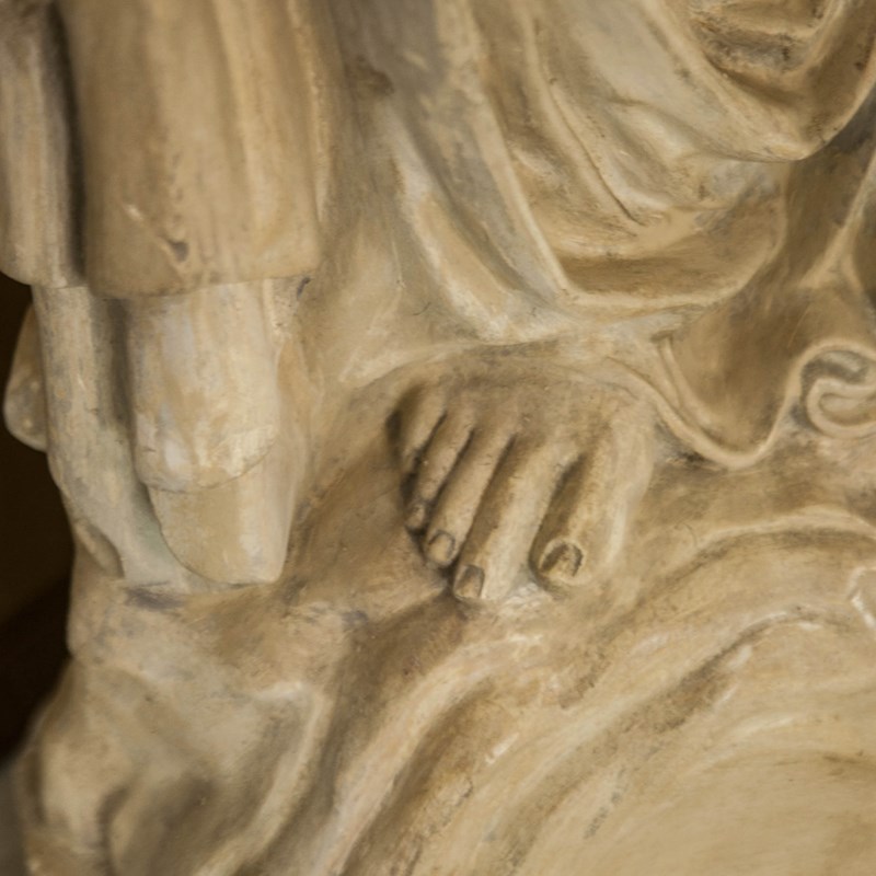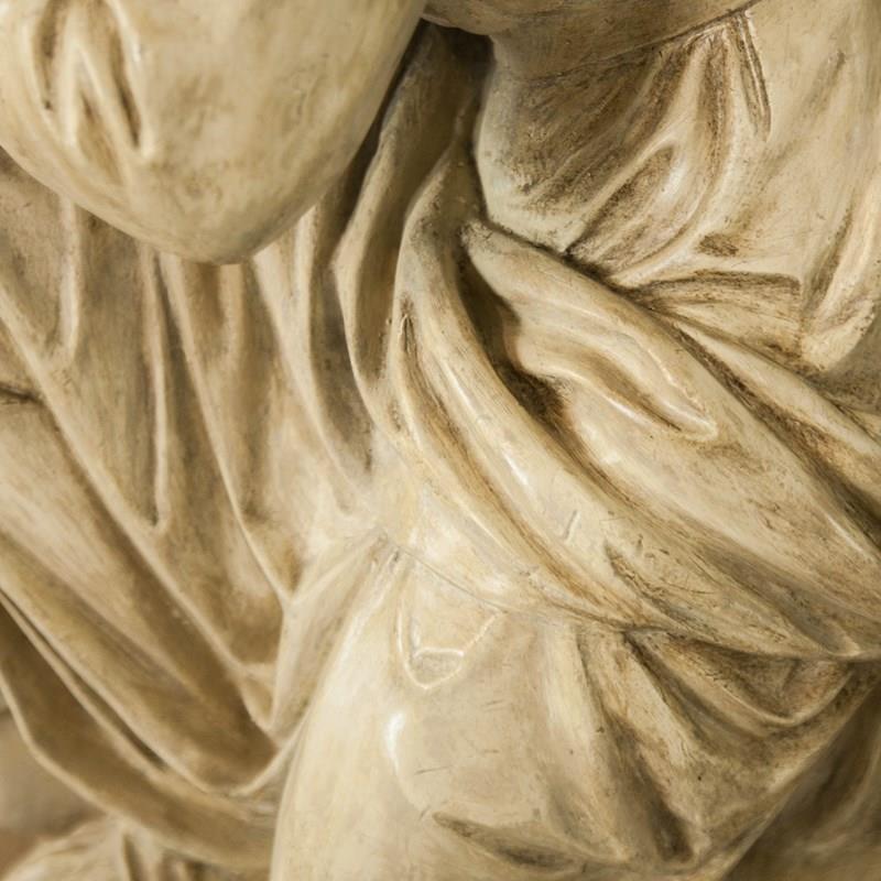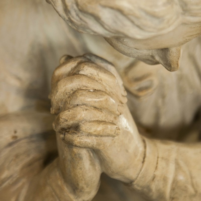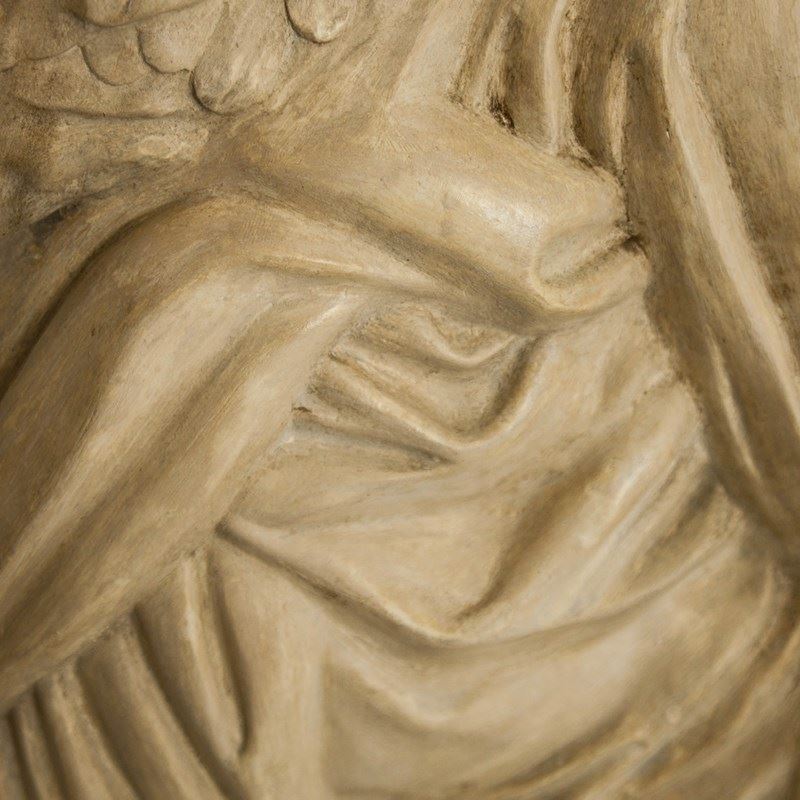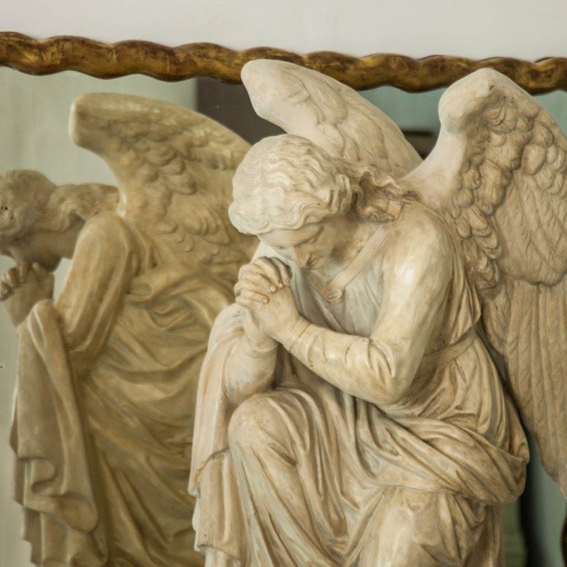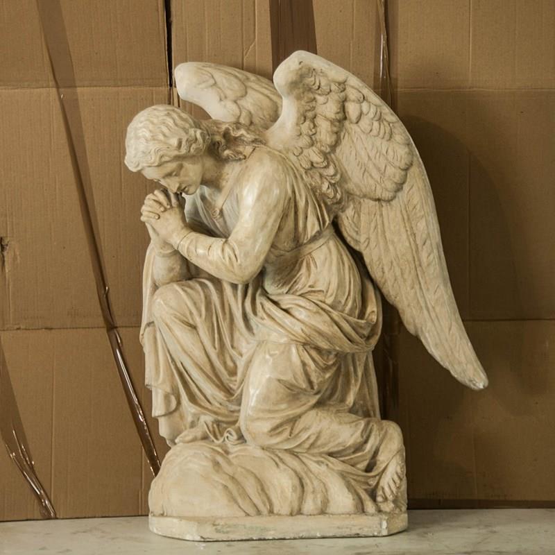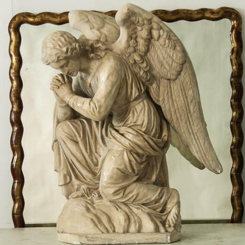 A large, plaster Angel figure. Finely sculpted kneeling model with well executed wings and drapery. Dimensions of base 49 cm x 29