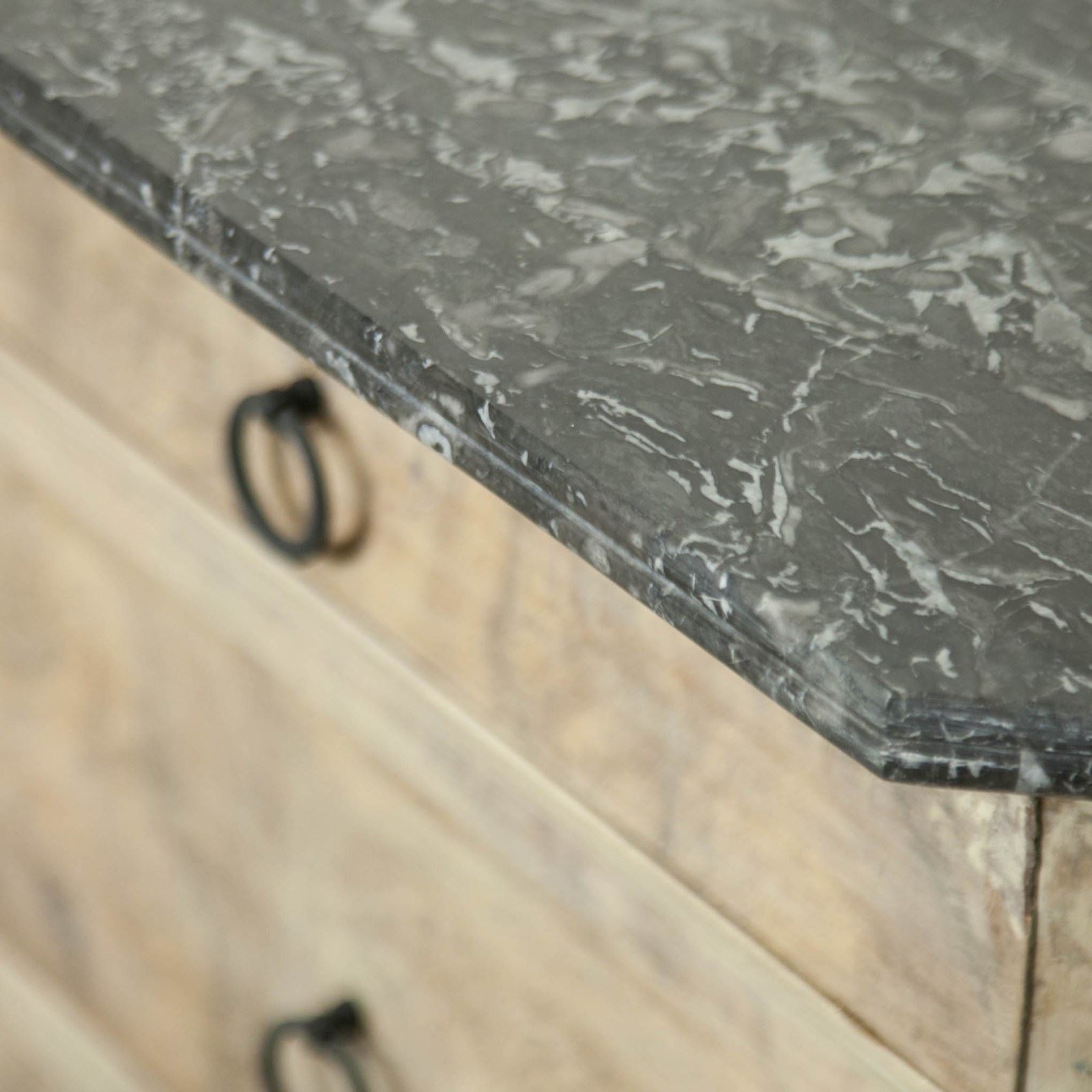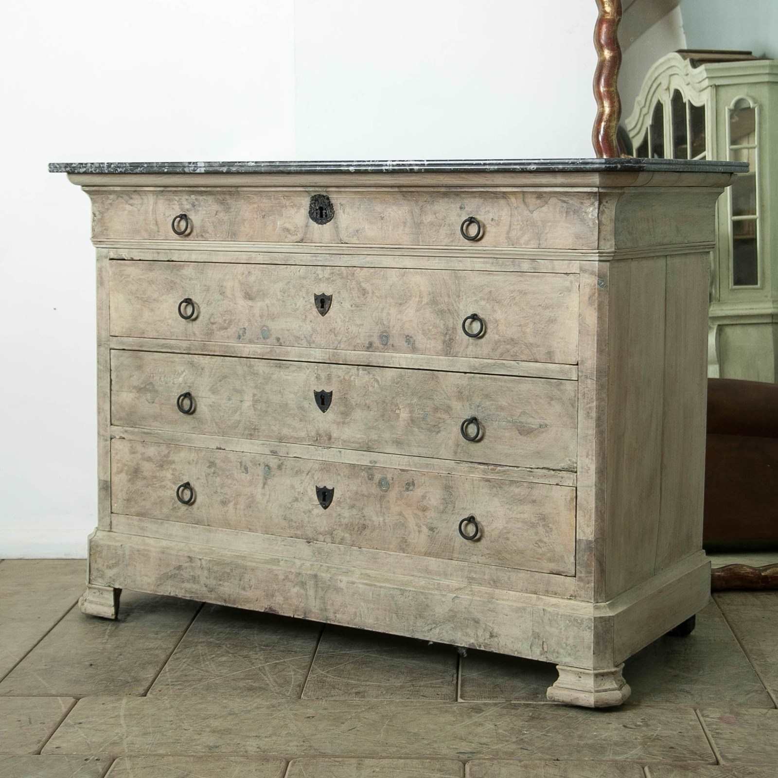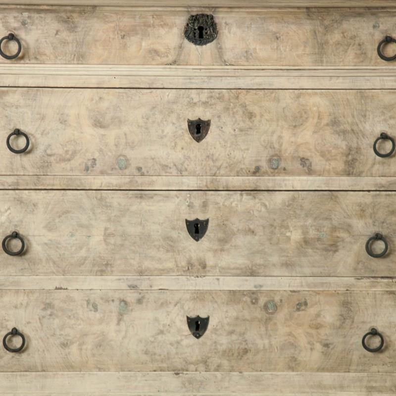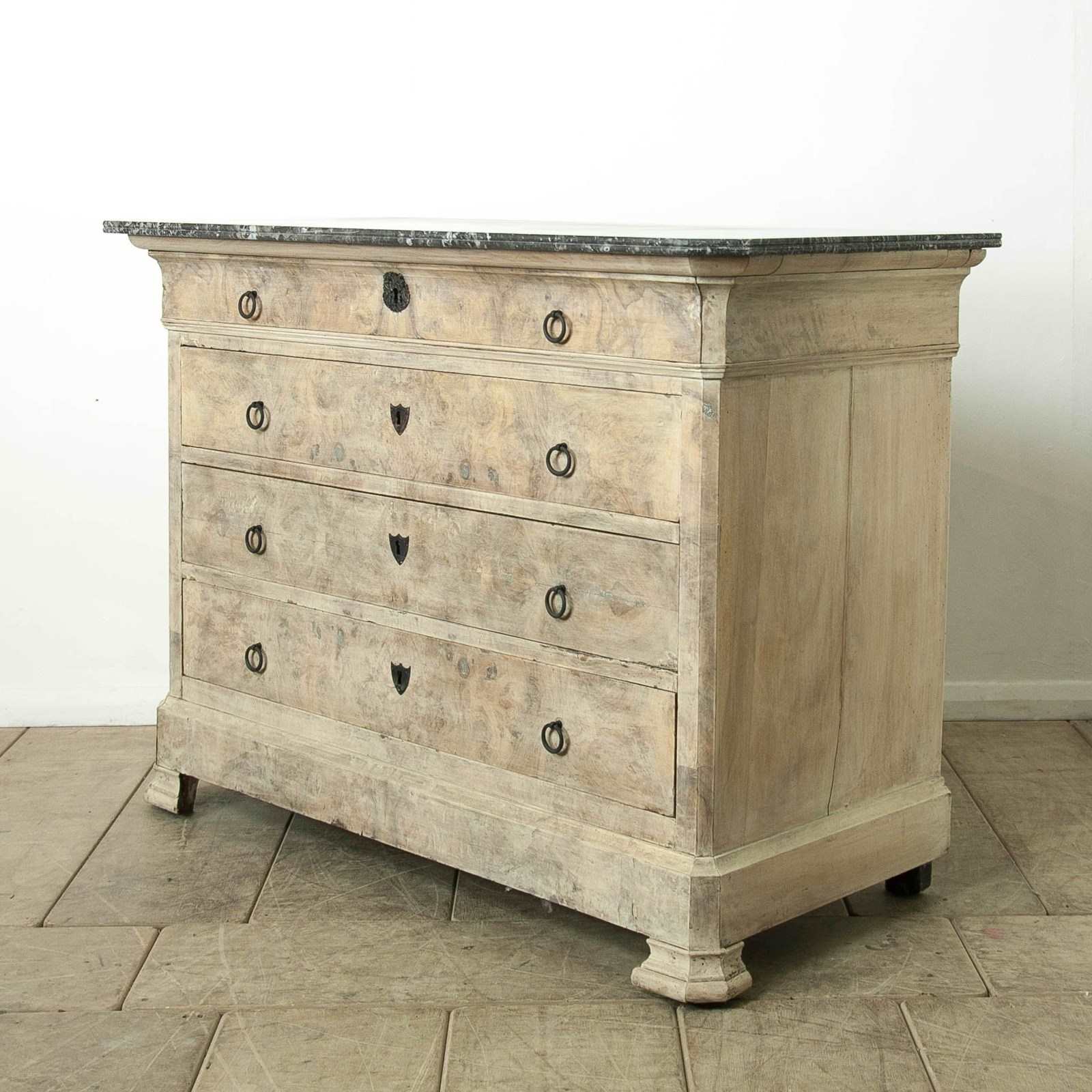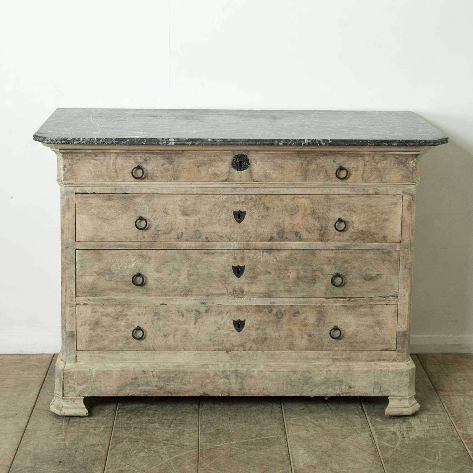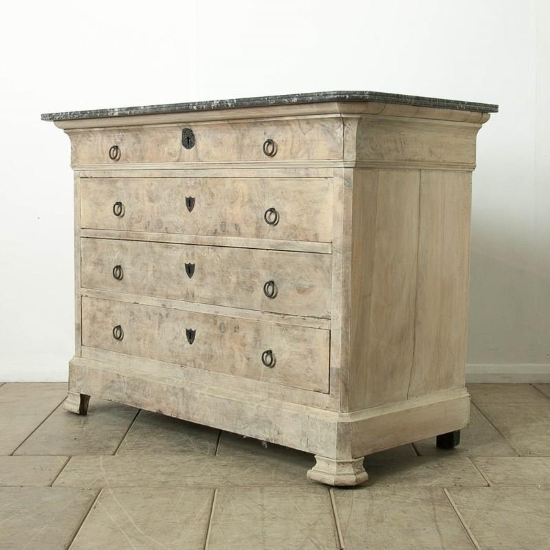 A bleached mahogany, Louis Philippe Commode with a figured grey marble top.