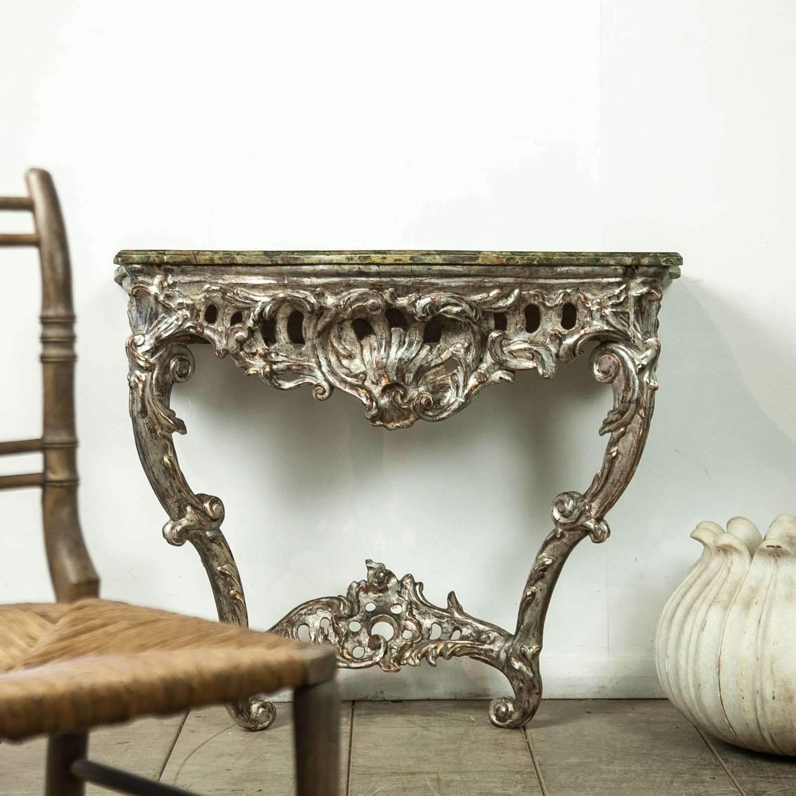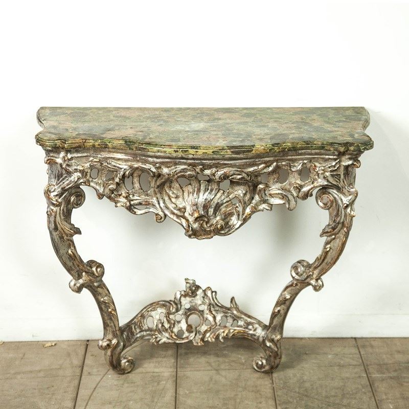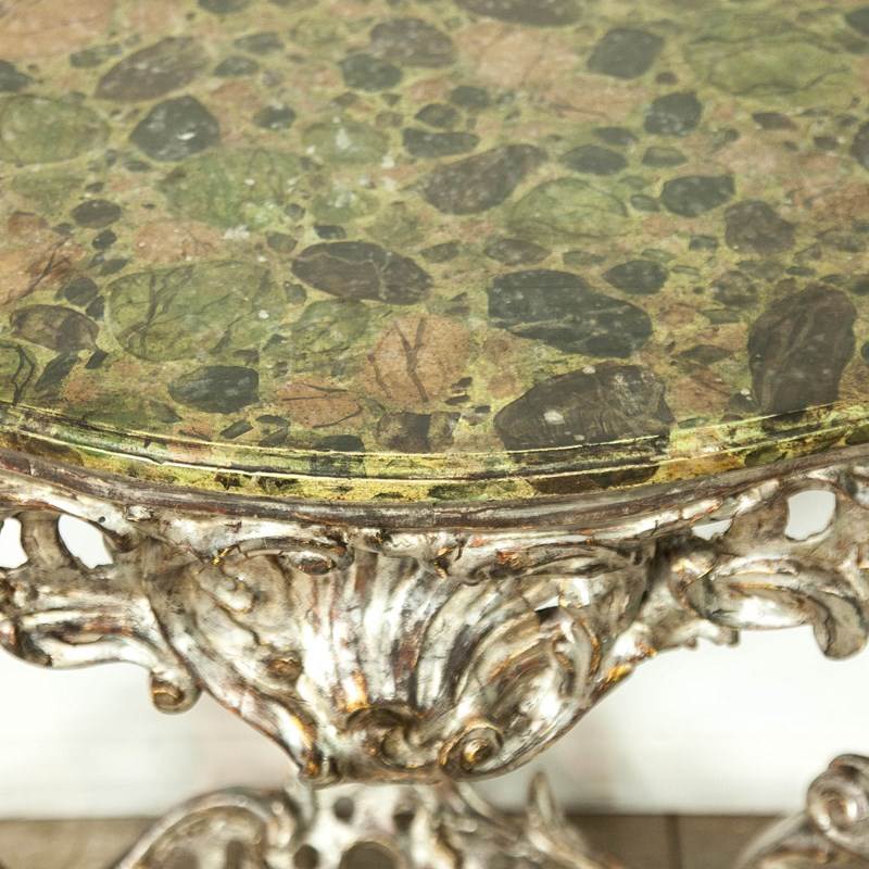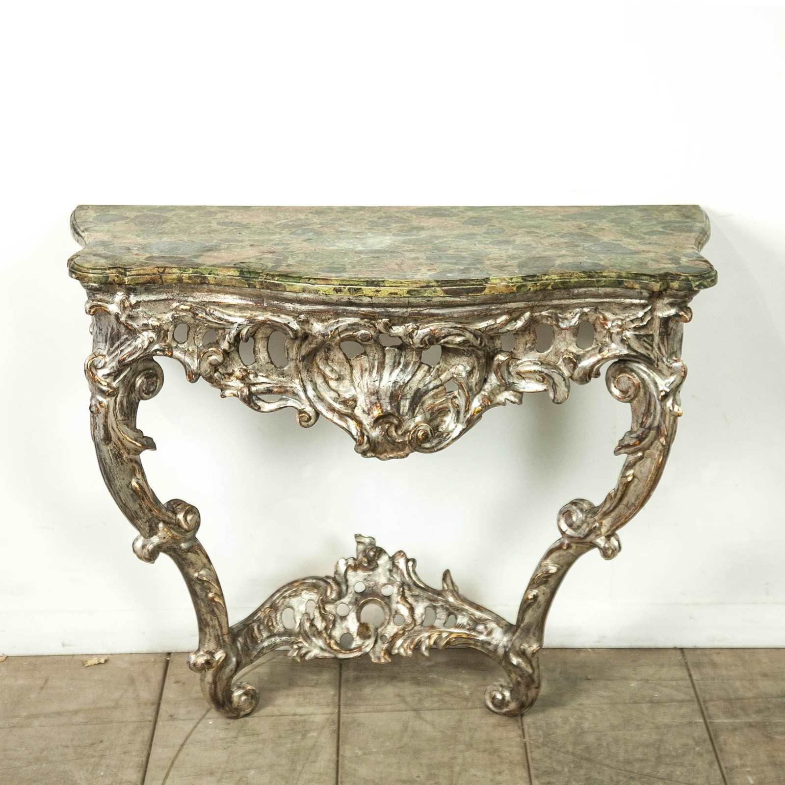 Louis XIV Silver Leaf Console With Faux Marble Top