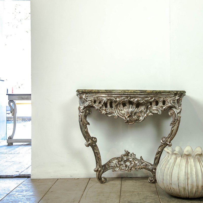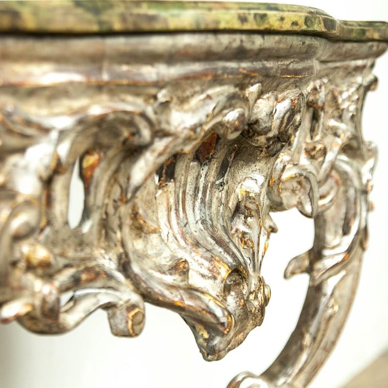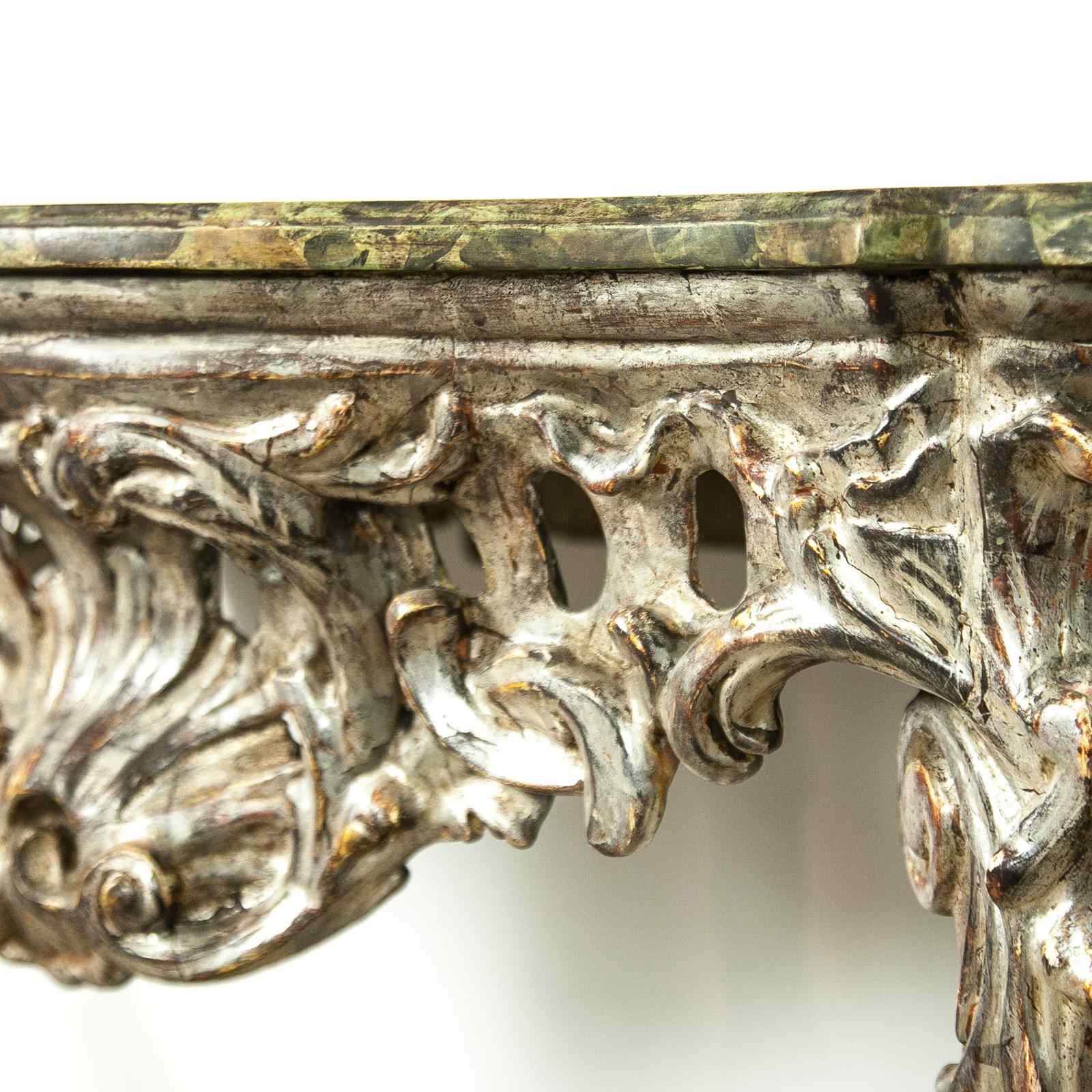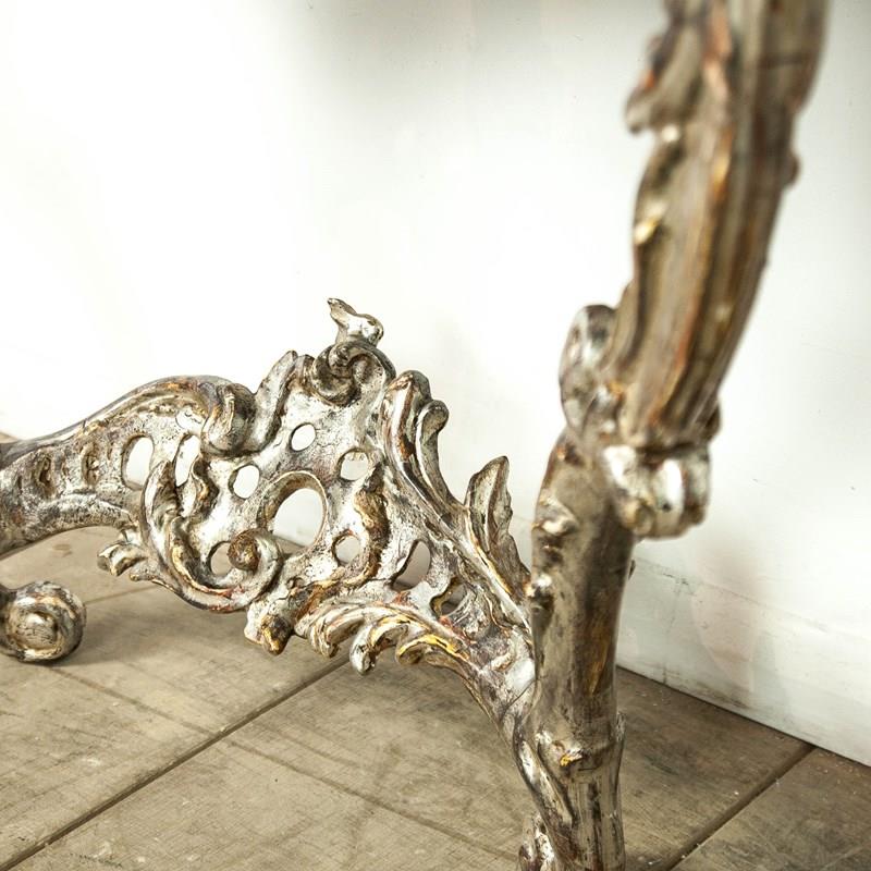 Louis XIV Silver Leaf Console With Faux Marble Top
